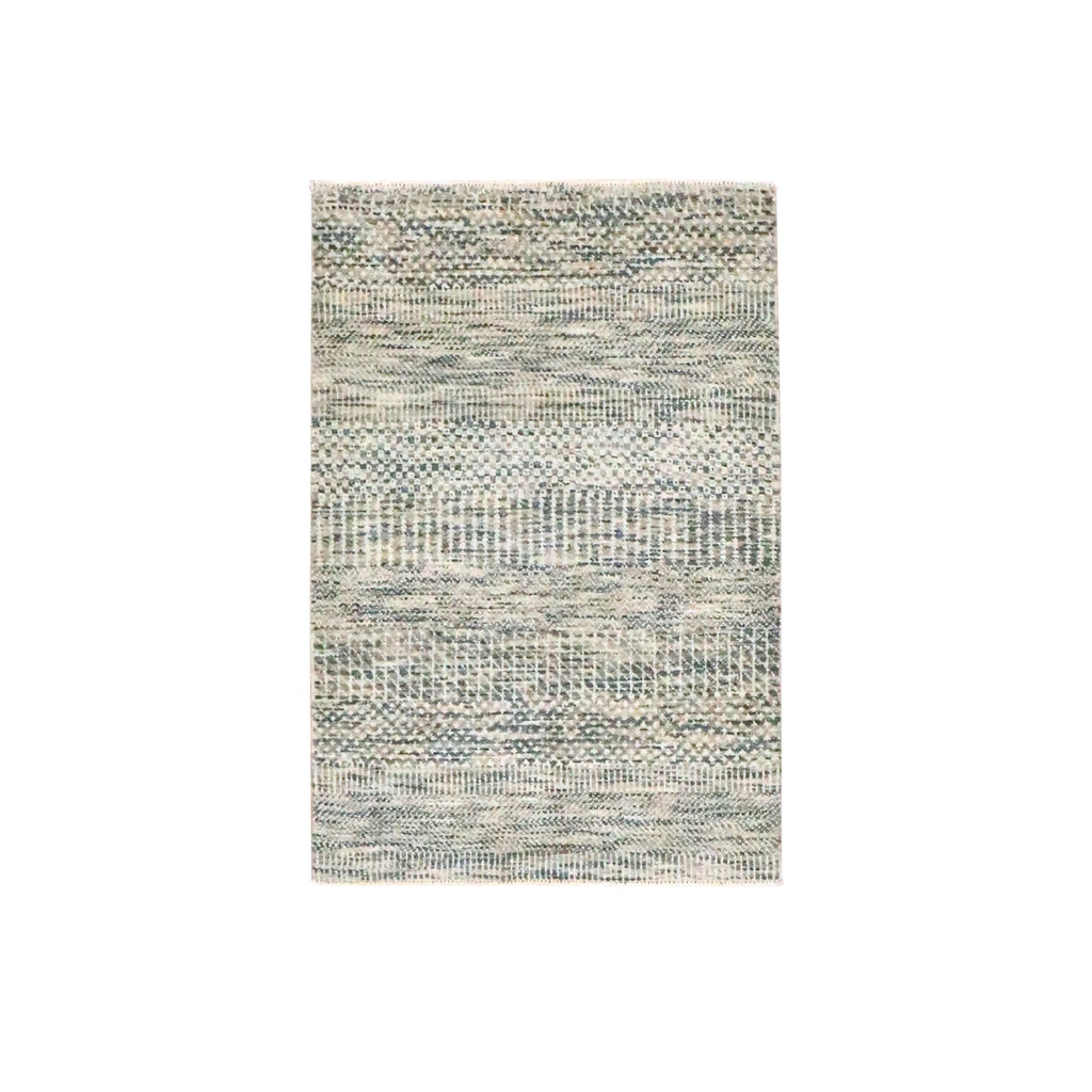 2'x3' Beige-brown, Modern Grass Design, Hand Knotted, Wool With Touch Of Silk, Tone On Tone, Lush And Plush, Sample, Mat, Oriental Rug FWR459942