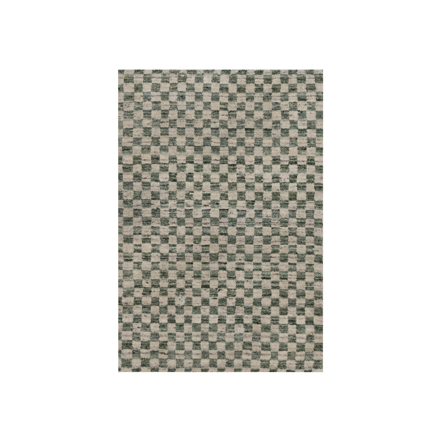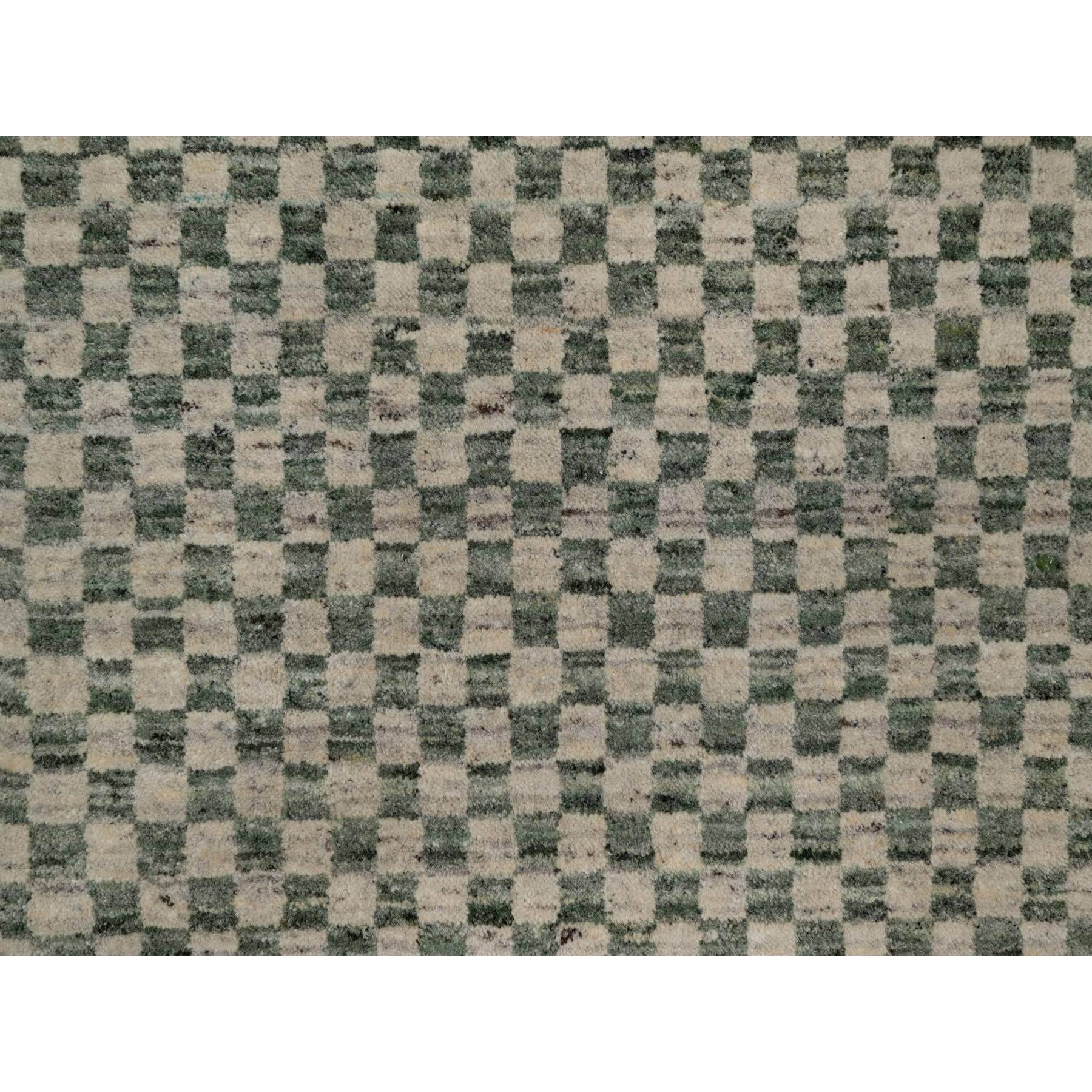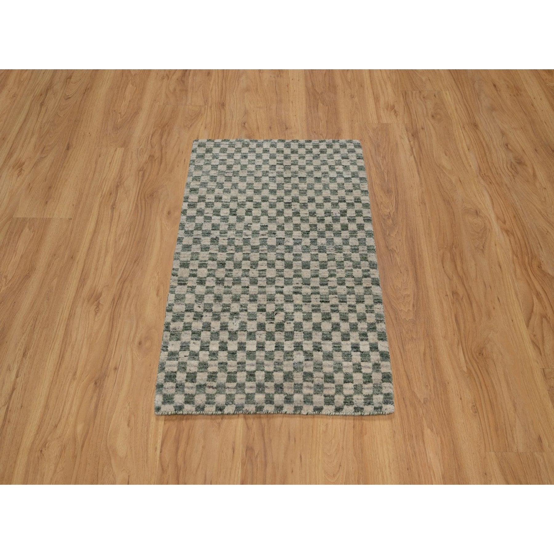 2'x3' Beige, Checkerboard Design, Hand Loomed, Pure Wool, Sample, Mat, Oriental Rug FWR550692