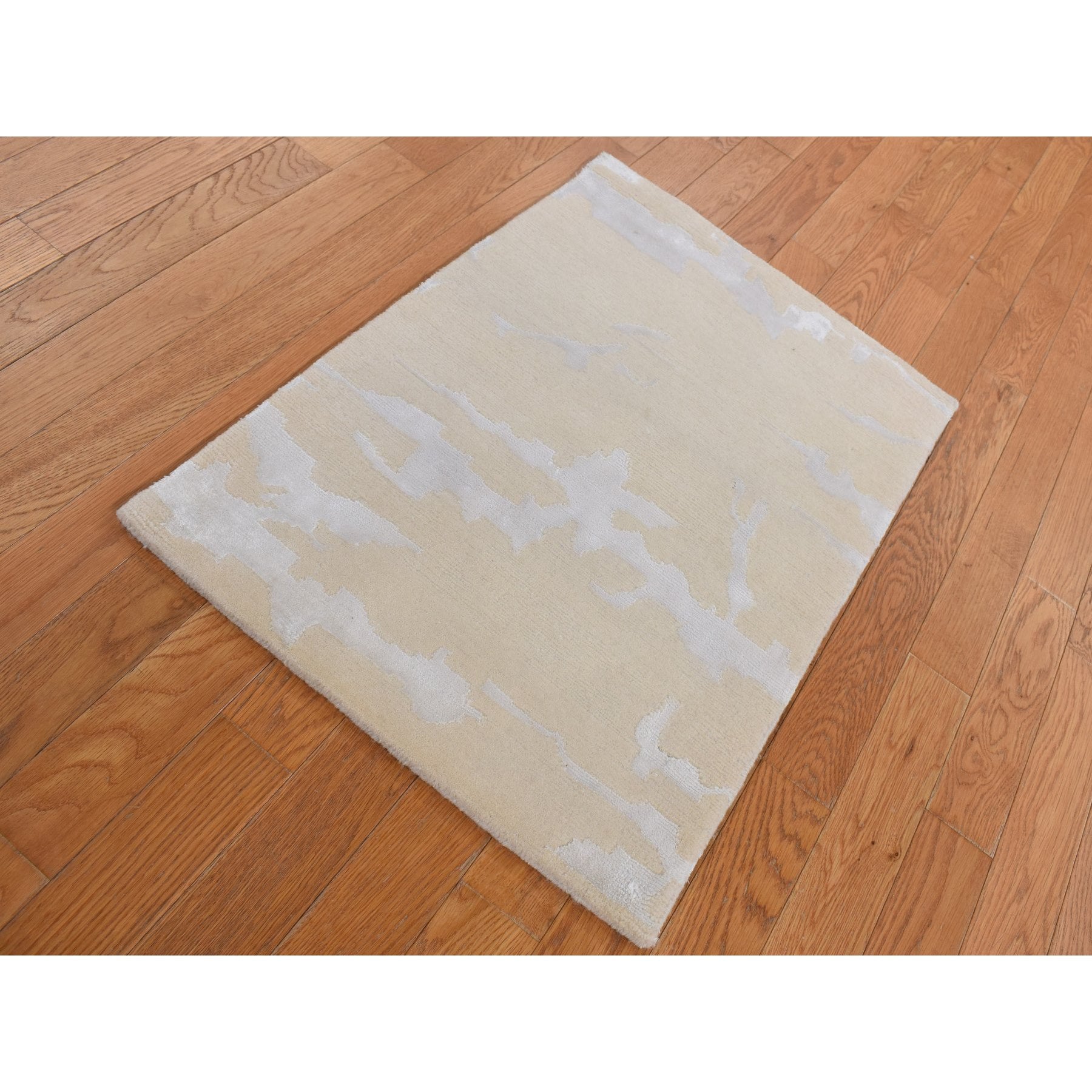 2'x3' Beige, Floral Nepali Weave Design, Hand Knotted, Modern, Wool And Silk, Clearance, Sample Oriental Rug FWR526758