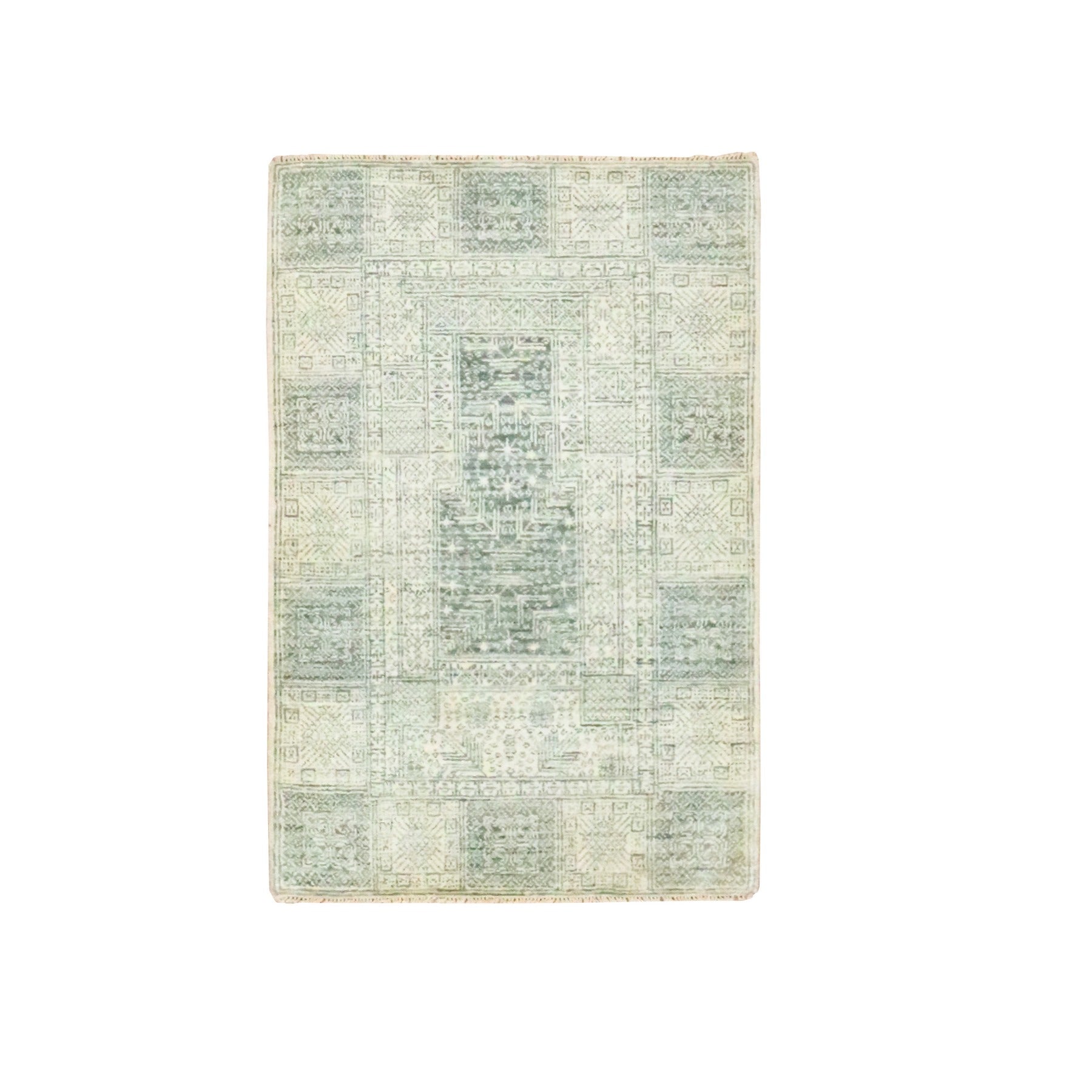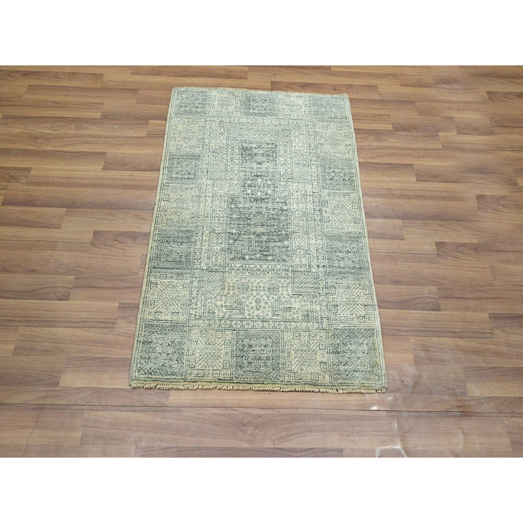 2'x3' Beige, Garden Design, Tone On Tone, Hand Knotted, Pure Wool, Sample, Mat, Oriental Rug FWR460032