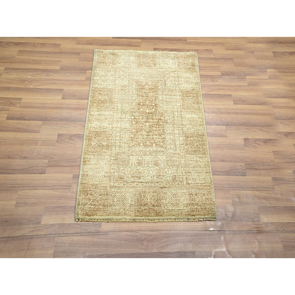 2'x3' Beige, Garden Design, Tone On Tone, Hand Knotted, Pure Wool, Sample, Mat, Oriental Rug FWR460050
