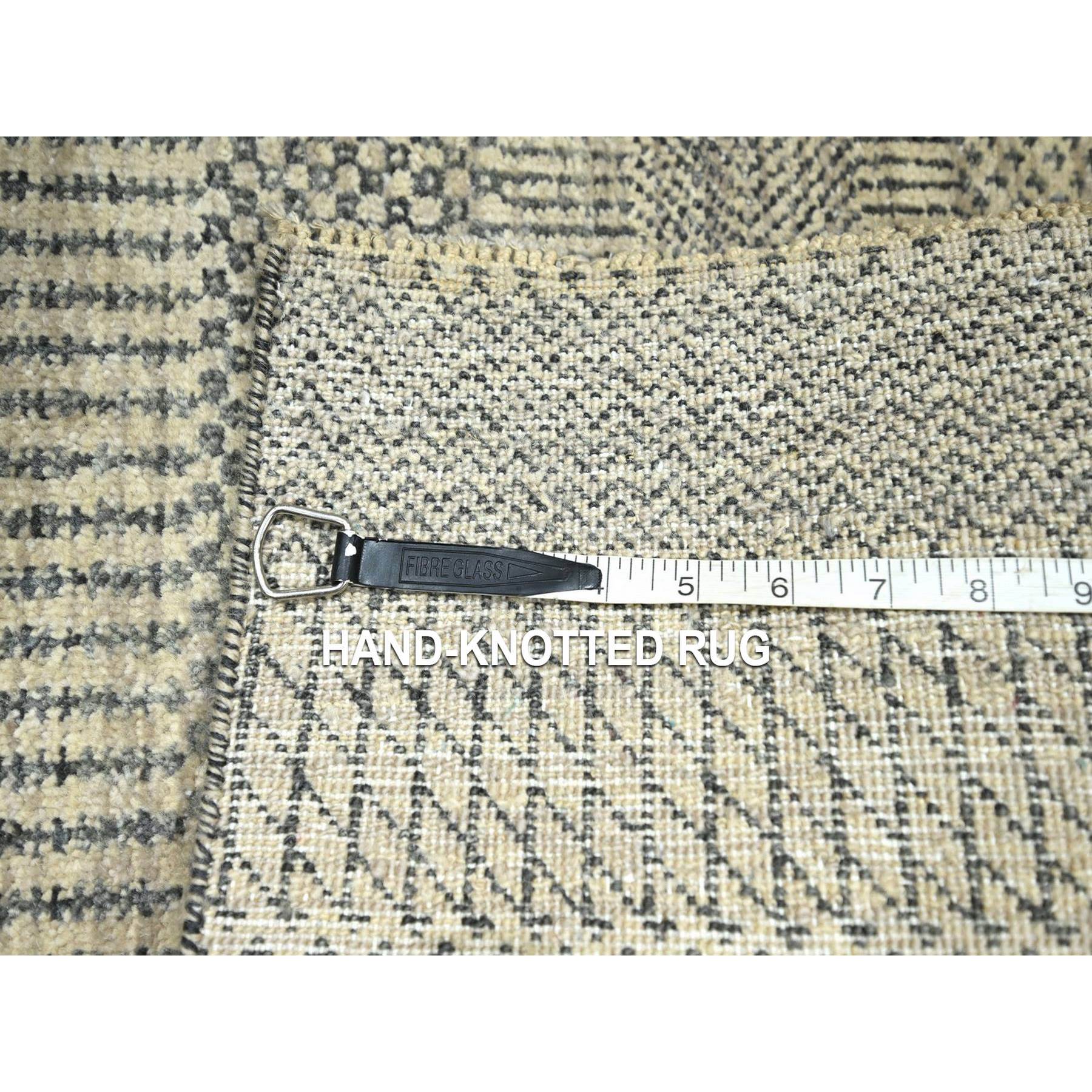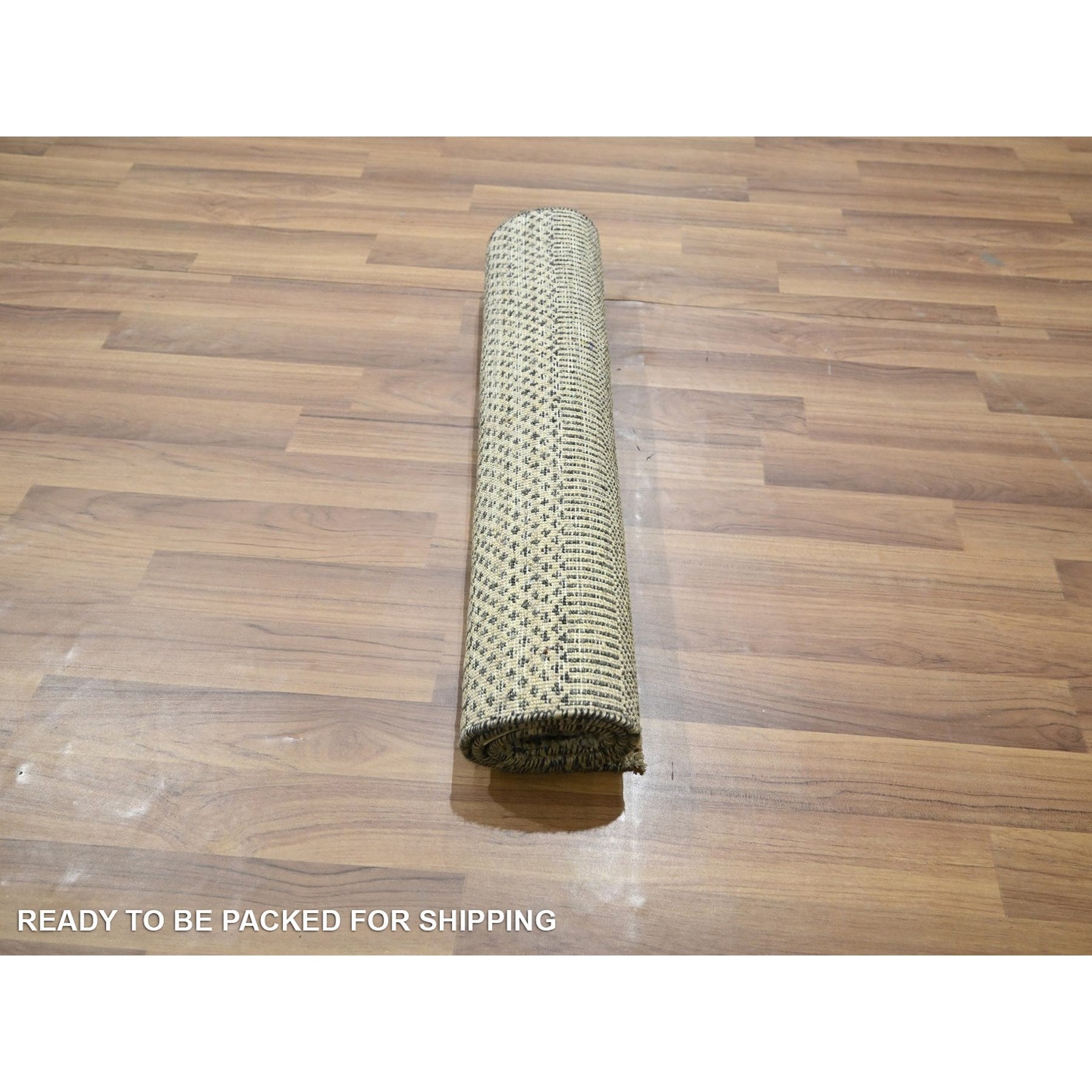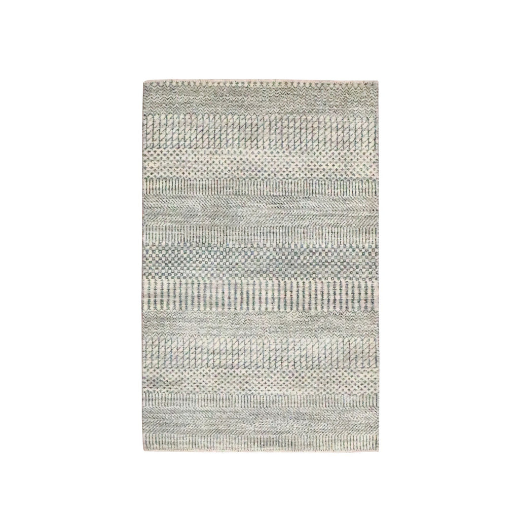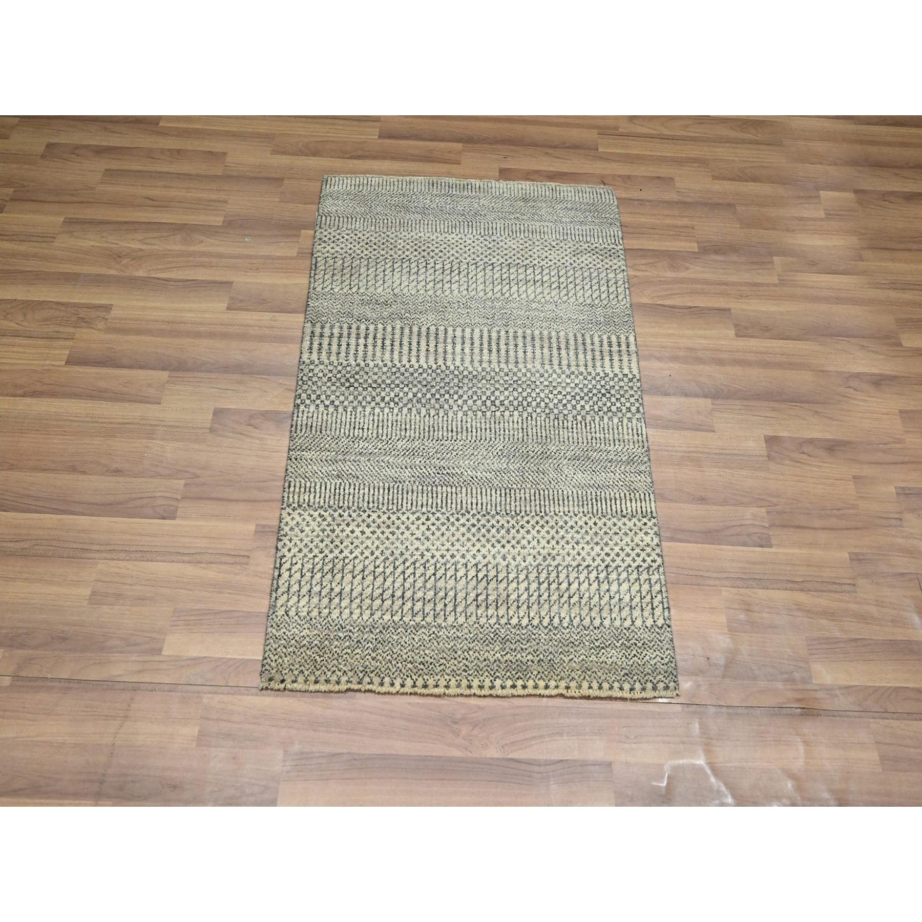2'x3' Beige-gray, Modern Grass Design, Hand Knotted, Tone On Tone, Wool With Touch Of Silk, Lush And Plush, Mat, Sample, Oriental Rug FWR459948