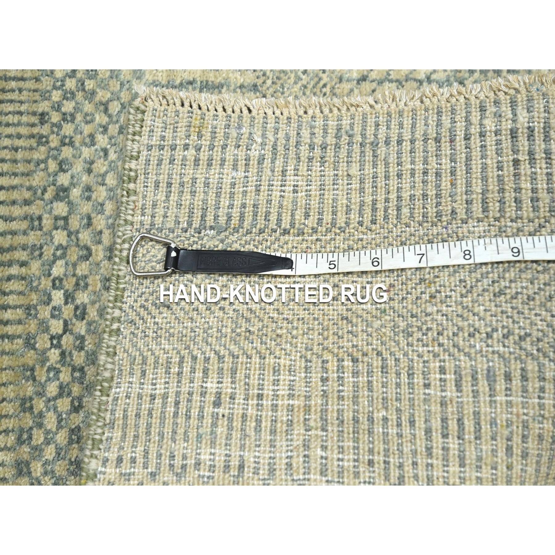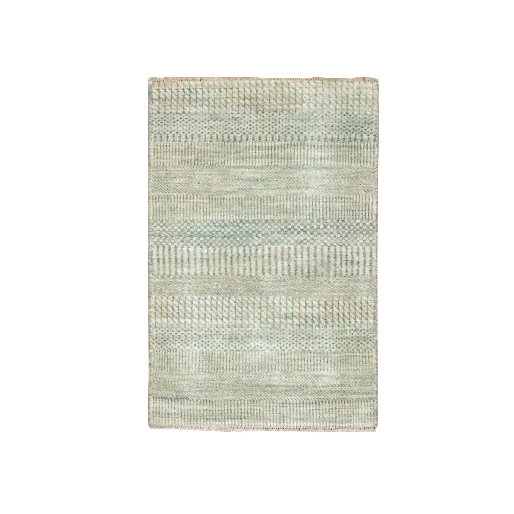 2'x3' Beige-gray, Modern Grass Design, Hand Knotted, Wool With Touch Of Silk, Tone On Tone, Lush And Plush, Mat, Sample, Oriental Rug FWR459912
