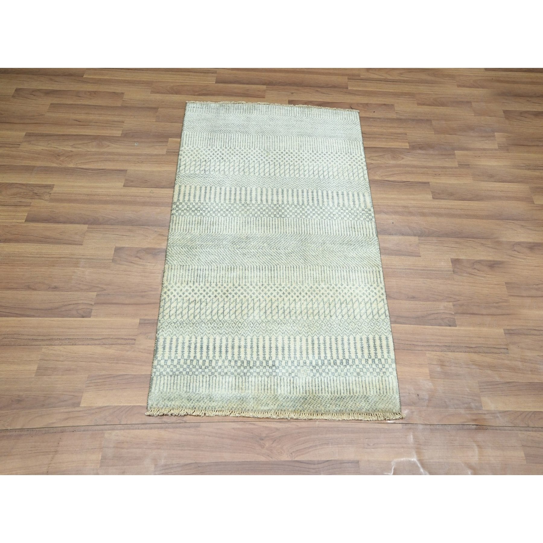 2'x3' Beige-gray, Modern Grass Design, Wool With Touch Of Silk, Hand Knotted, Tone On Tone, Lush And Plush, Sample, Mat, Oriental Rug FWR459870