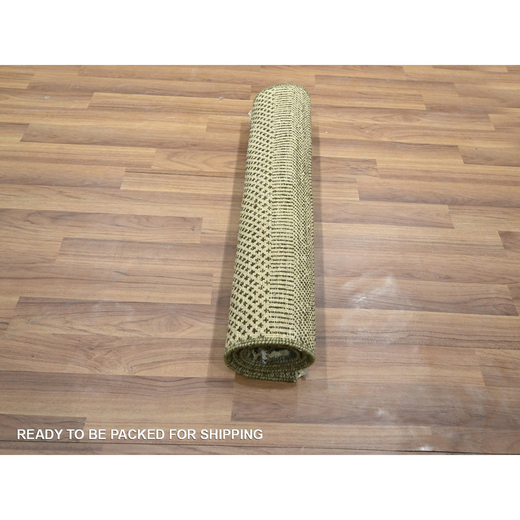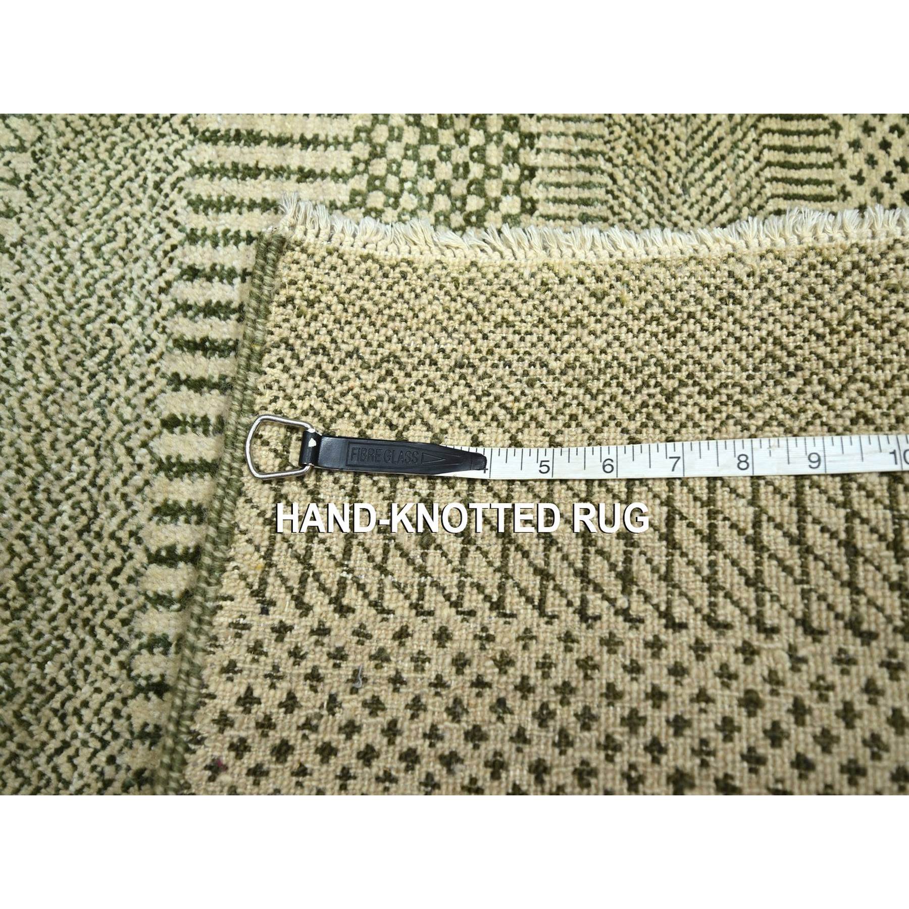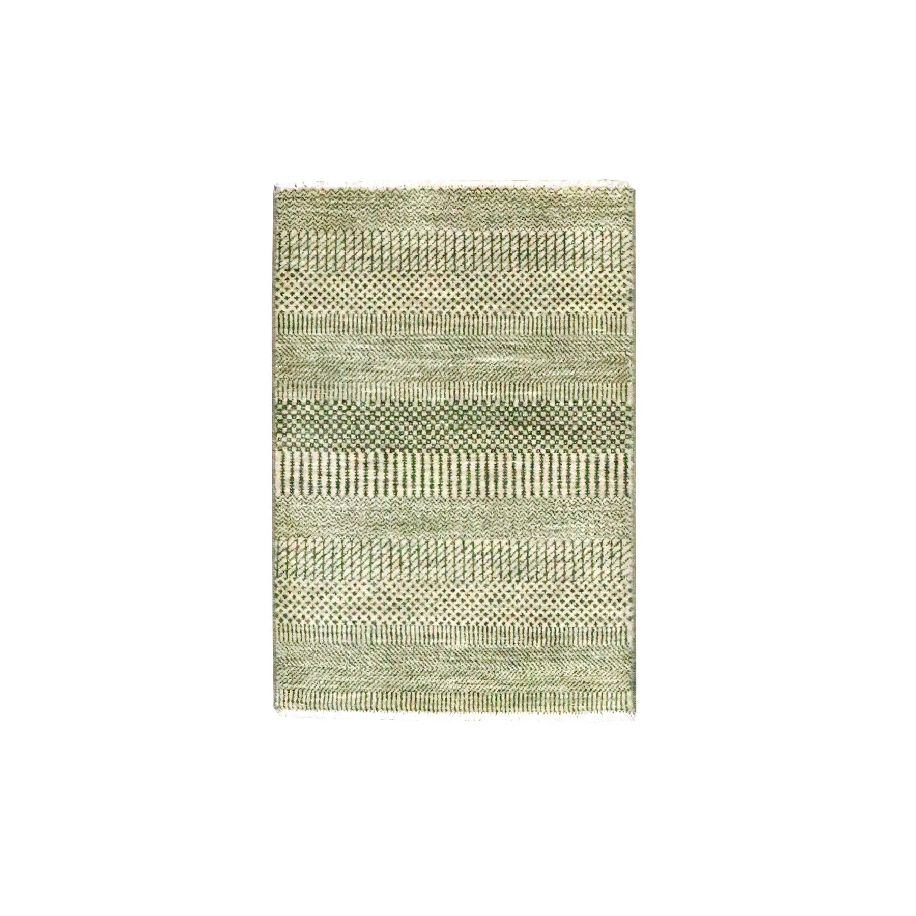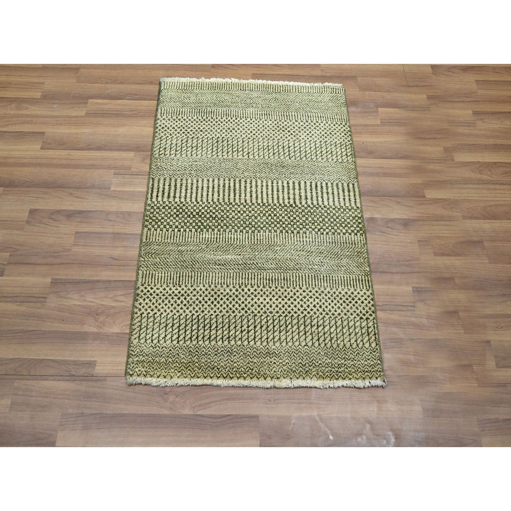 2'x3' Beige, Hand Knotted, Modern Grass Design, Lush And Plush, Wool With Touch Of Silk, Sample, Tone On Tone, Mat, Oriental Rug FWR459138