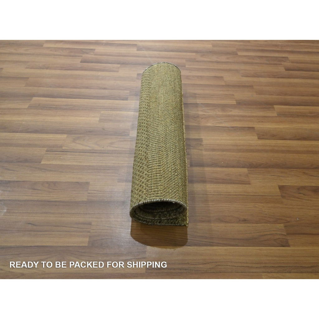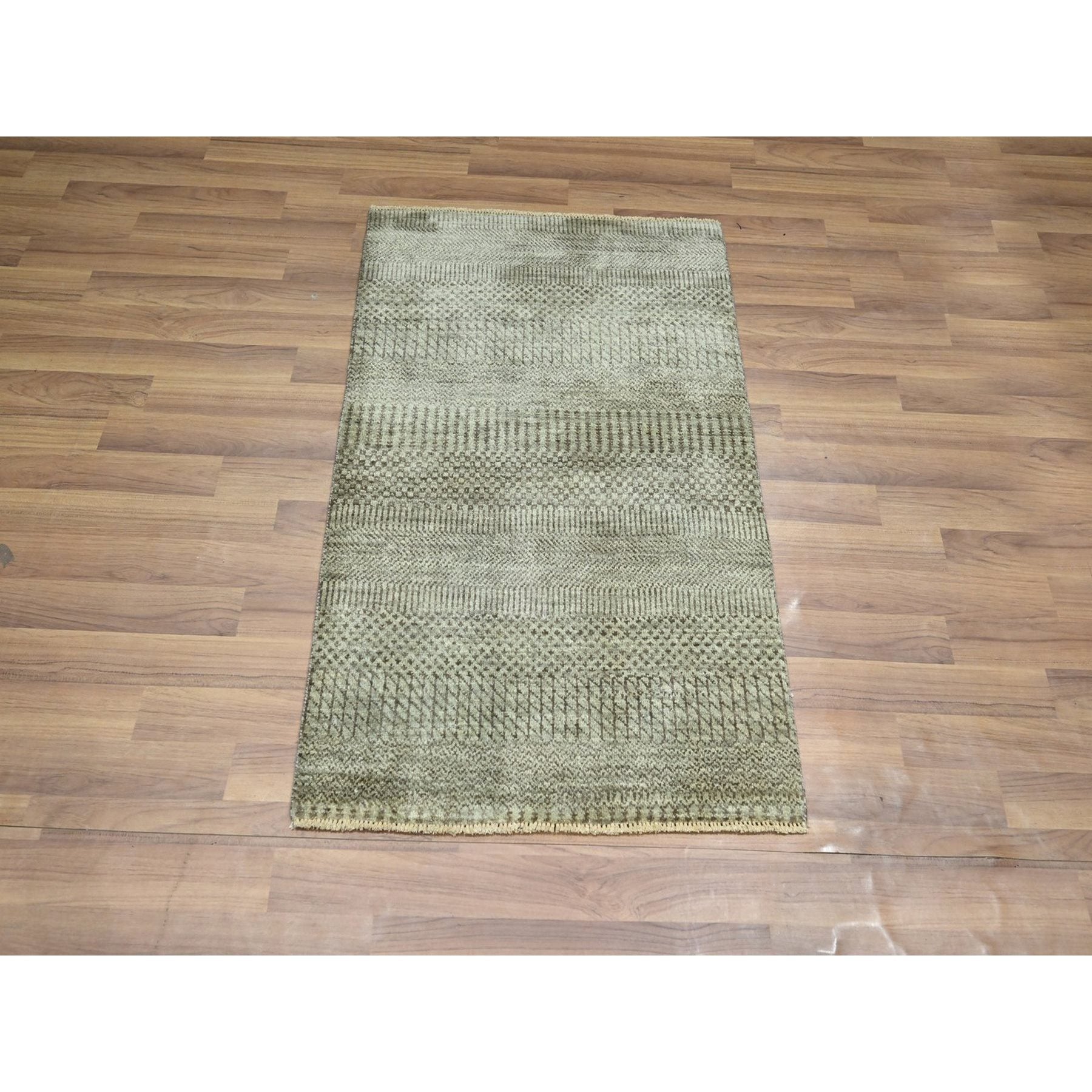 2'x3' Beige, Hand Knotted, Modern Grass Design, Wool With Touch Of Silk, Tone On Tone, Lush And Plush, Sample, Mat, Oriental Rug FWR459996