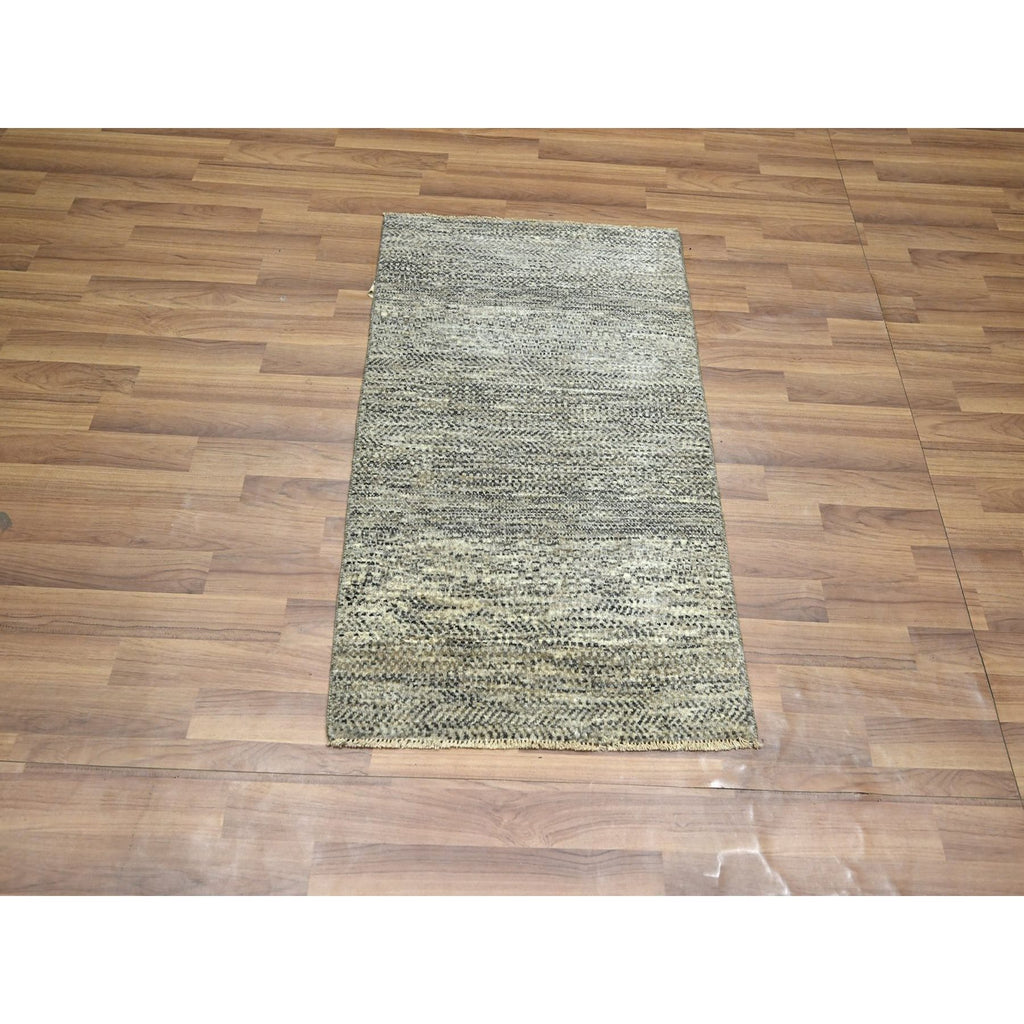 2'x3' Beige, Modern Grass Design, Hand Knotted, Undyed Natural Wool, Tone On Tone, Mat, Sample, Oriental Rug FWR459504