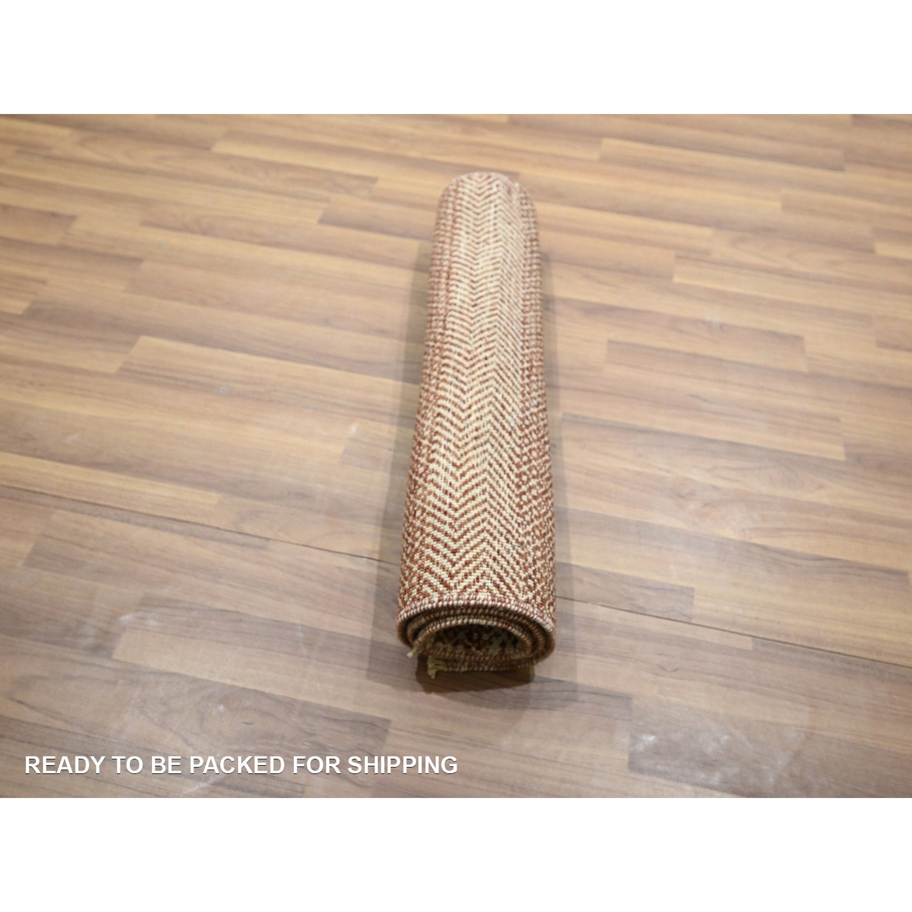 2'x3' Beige-red, Modern Grass Design, Tone On Tone, Wool And Silk, Hand Knotted, Mat, Sample, Oriental Rug FWR459582