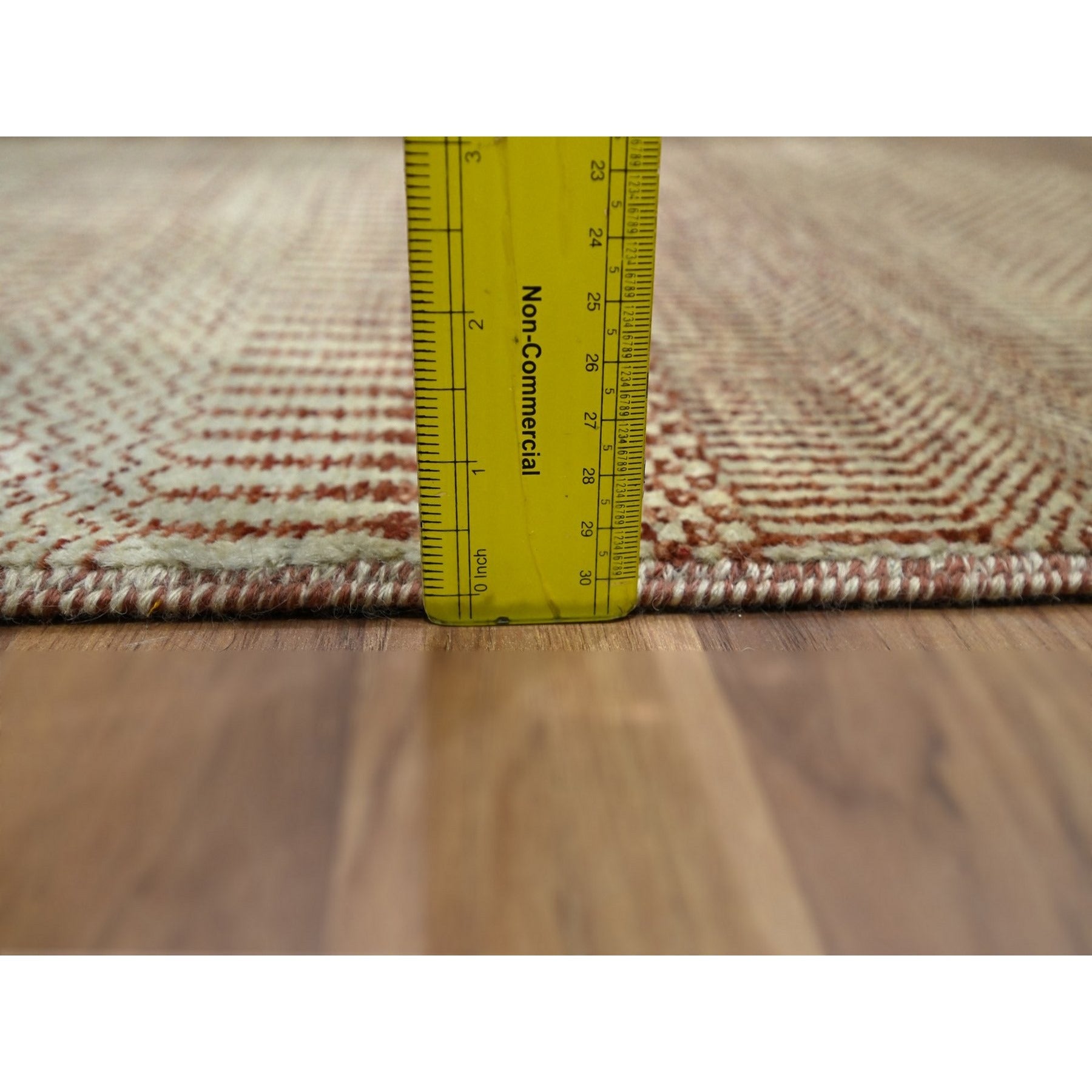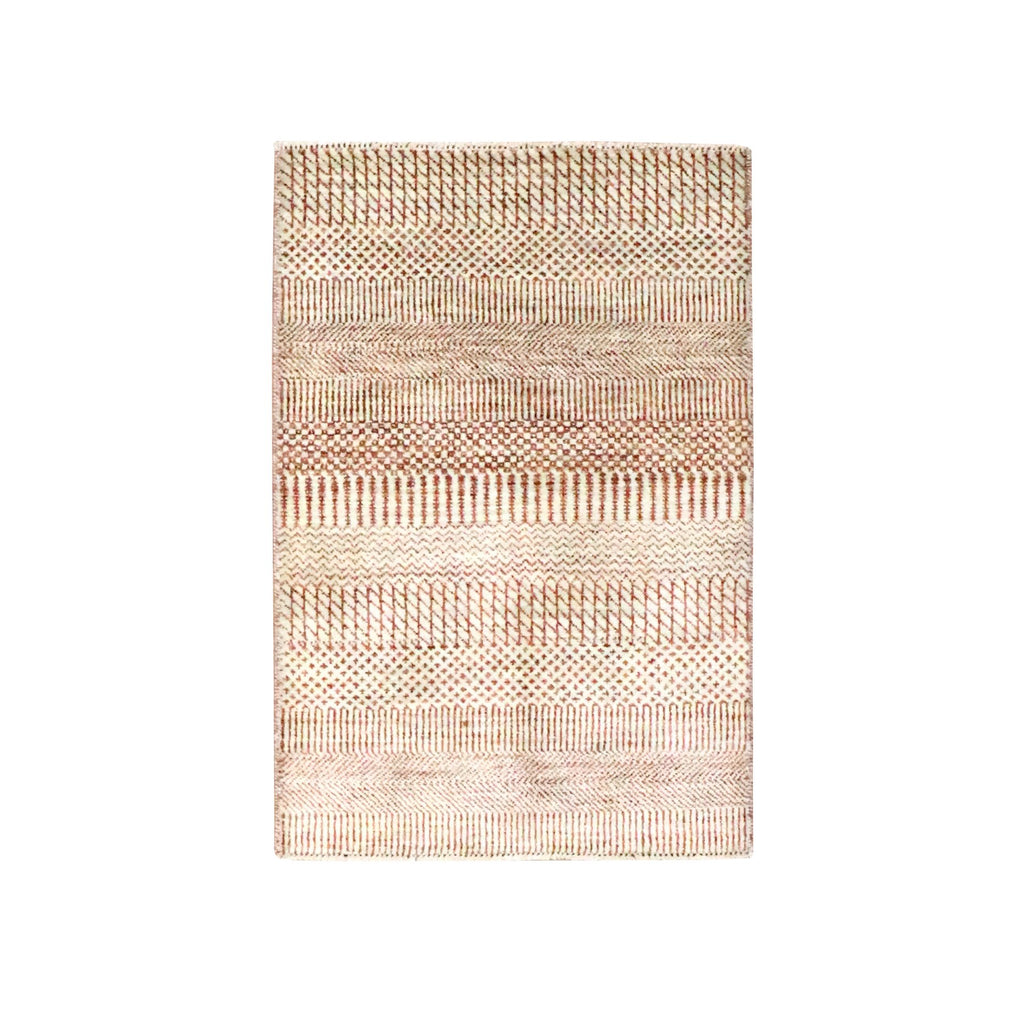 2'x3' Beige-rust, Hand Knotted, Modern Grass Design, Wool With Touch Of Silk, Tone On Tone, Lush And Plush, Sample, Mat, Oriental Rug FWR459822