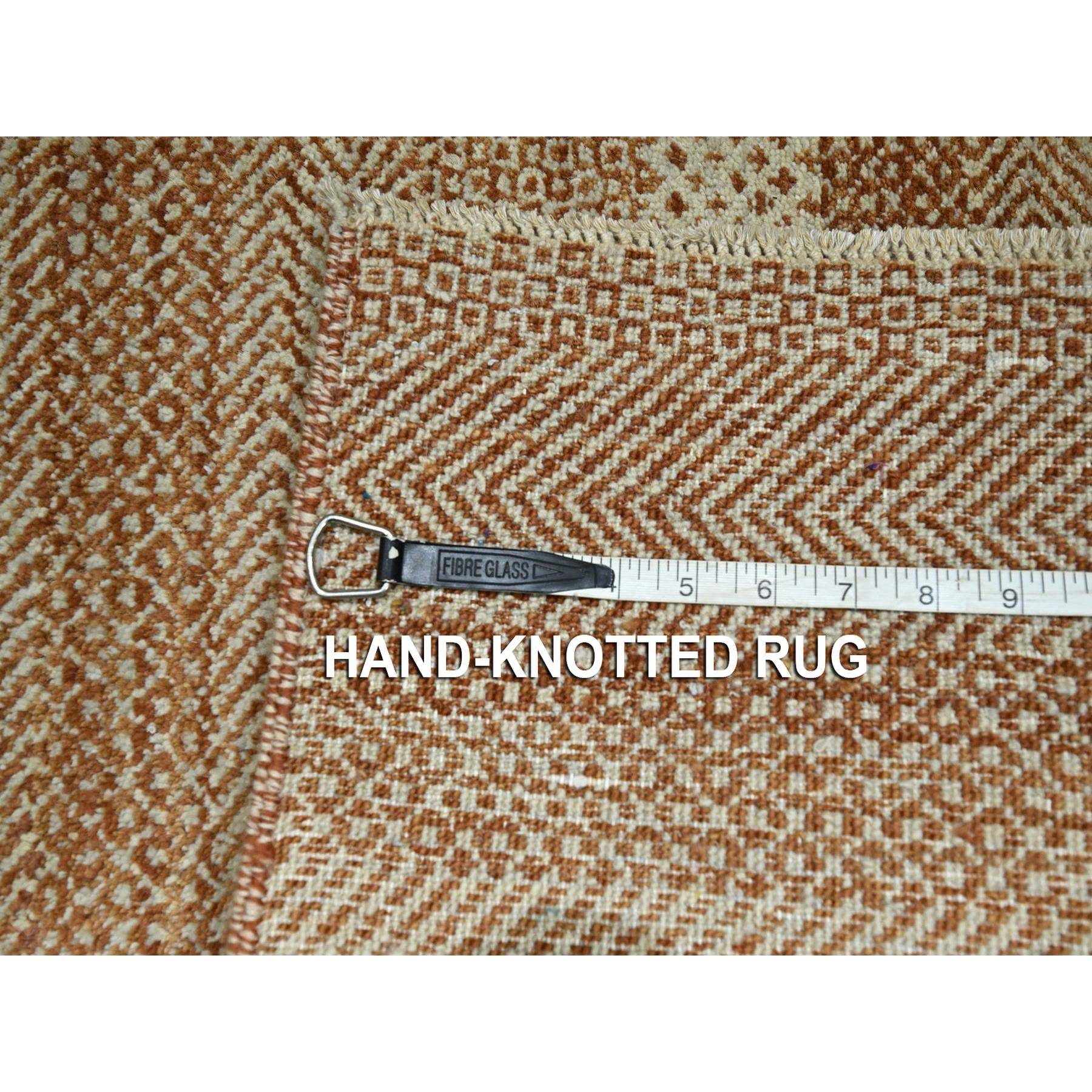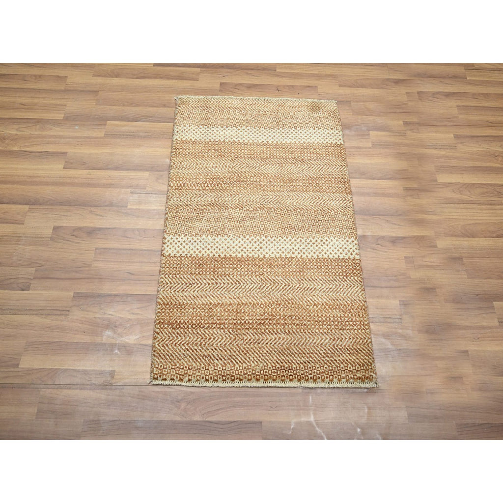 2'x3' Beige-rust, Tone On Tone, Modern Grass Design, Hand Knotted, Wool And Silk, Mat, Sample, Oriental Rug FWR459588