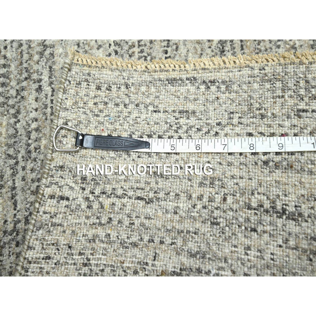 2'x3' Beige, Undyed Natural Wool, Modern Grass Design, Tone On Tone, Hand Knotted, Mat, Sample, Oriental Rug FWR459498