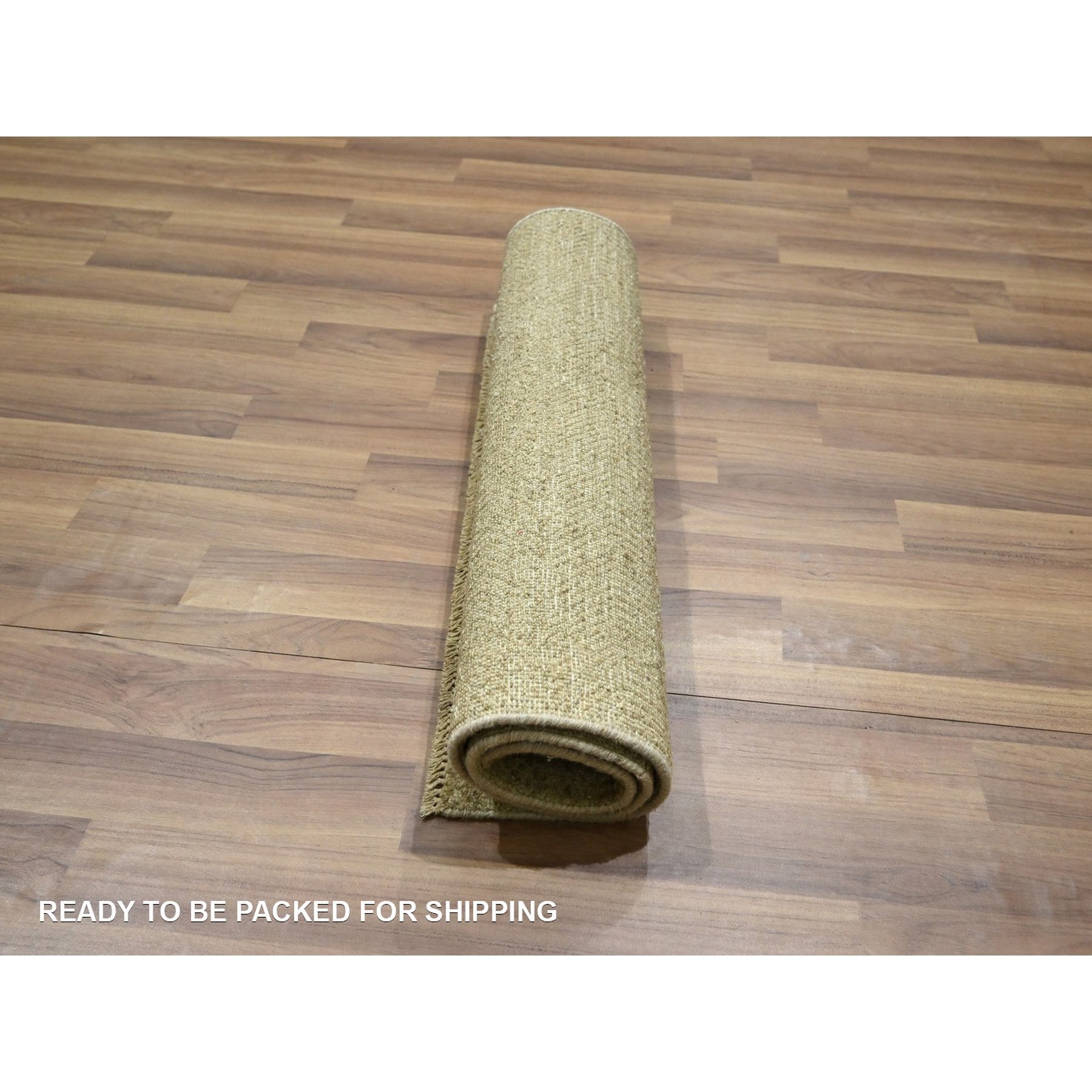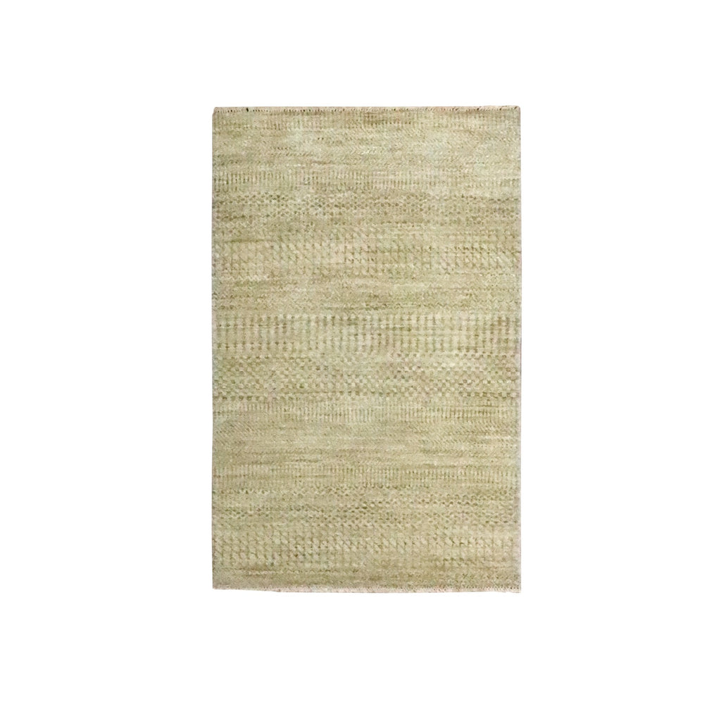 2'x3' Beige, Wool With Touch Of Silk, Modern Grass Design, Hand Knotted, Tone On Tone, Lush And Plush, Mat, Sample, Oriental Rug FWR459648