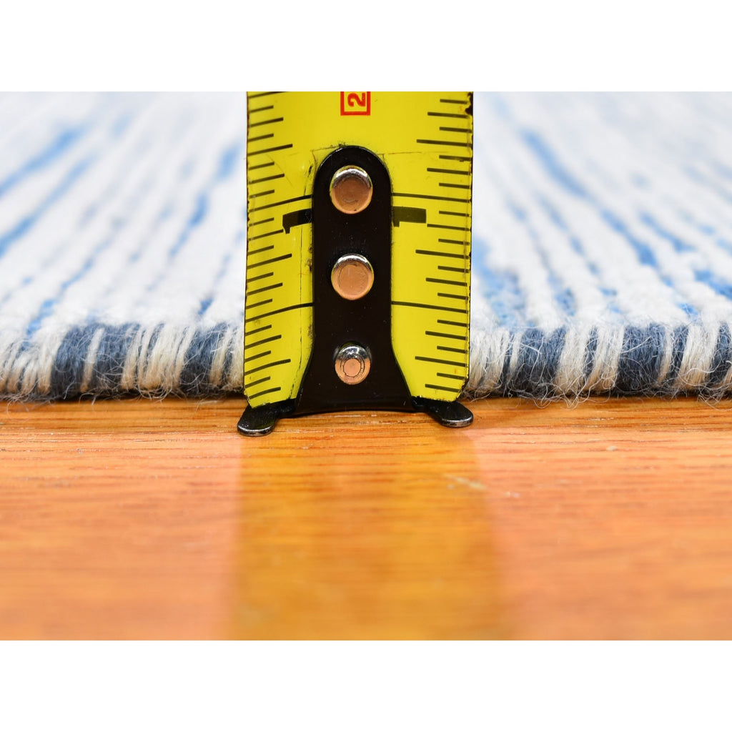 2'x3' Blue Striae Design Silk With Textured Wool Hand Knotted Oriental Rug FWR357246