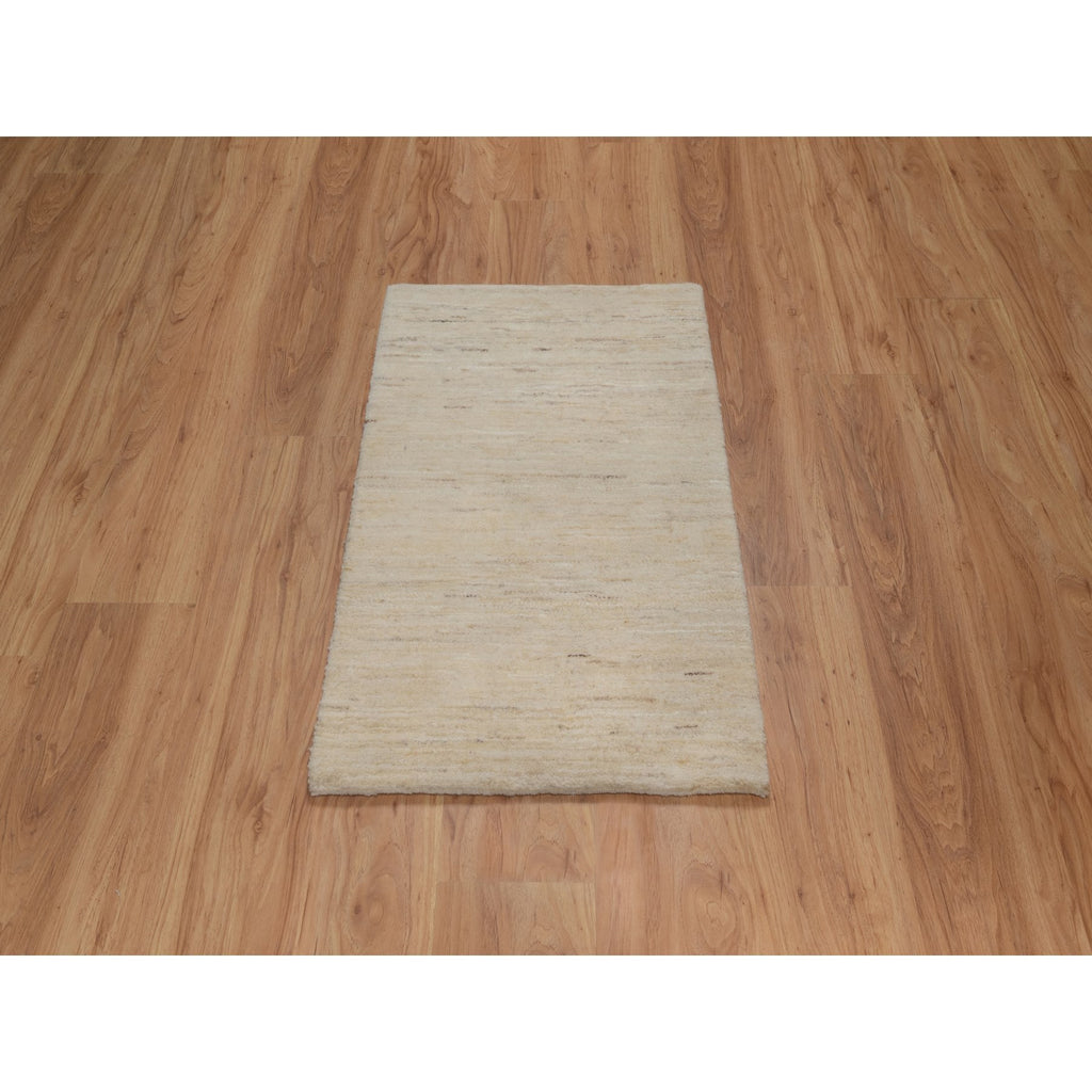 2'x3' Bone White, Thick And Plush, Modern, Plain Design, Lori Buft Gabbeh, Pure Wool, Hand Knotted, Mat, Oriental Rug FWR547770