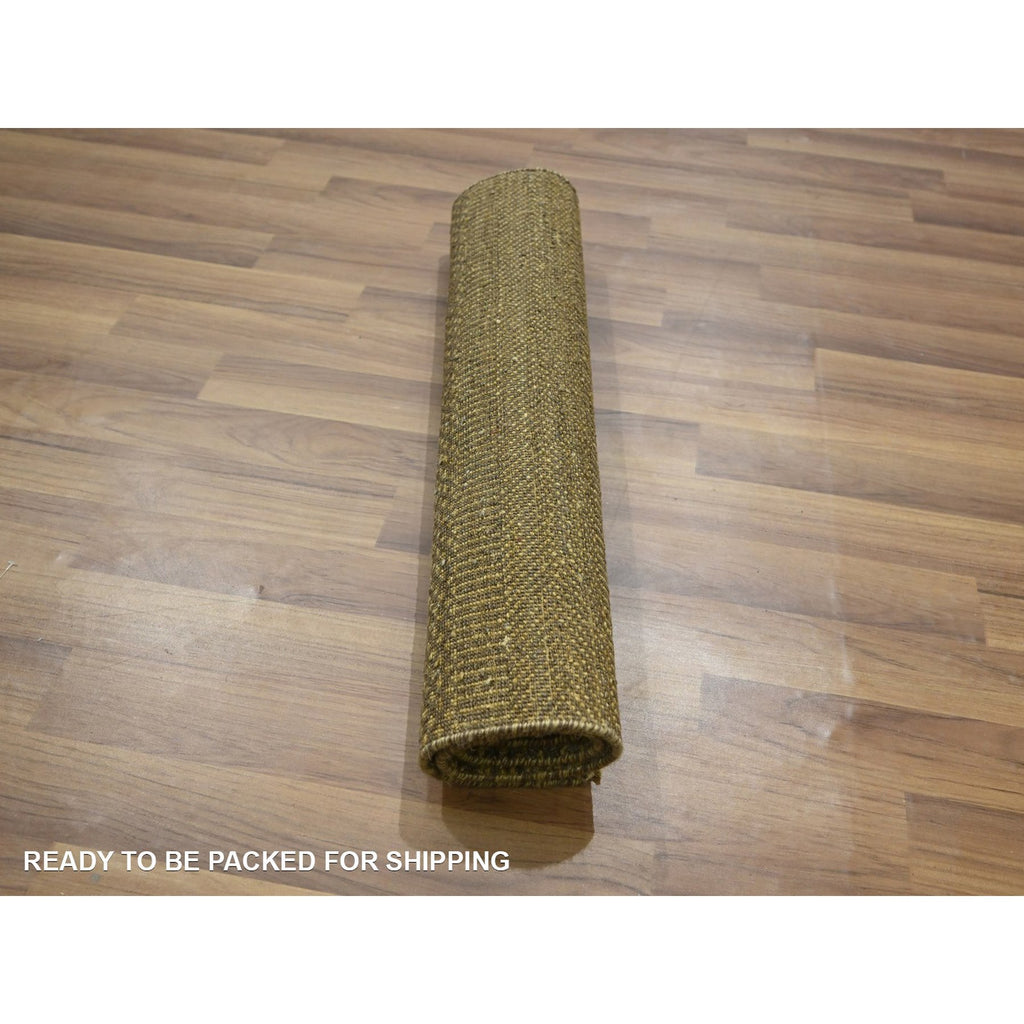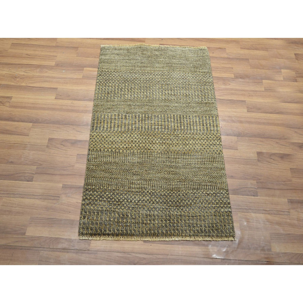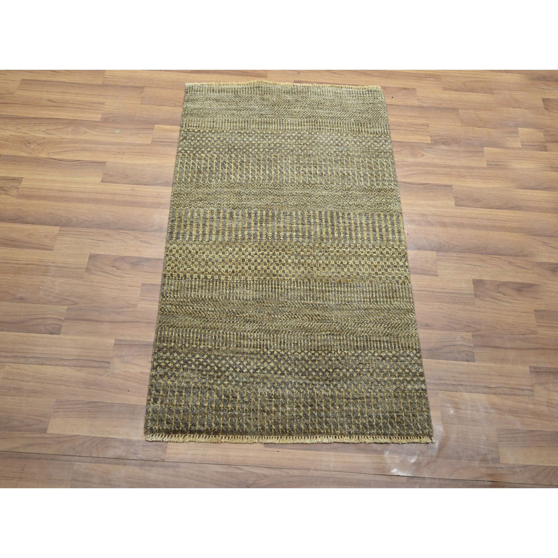 2'x3' Cedar Brown, Hand Knotted, Modern Grass Design, Wool With Touch Of Silk, Tone On Tone, Lush And Plush, Sample, Mat, Oriental Rug FWR459630