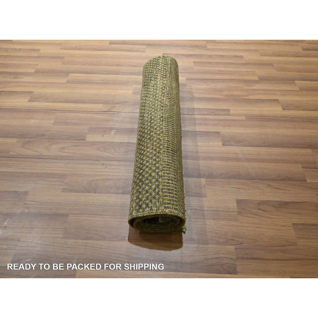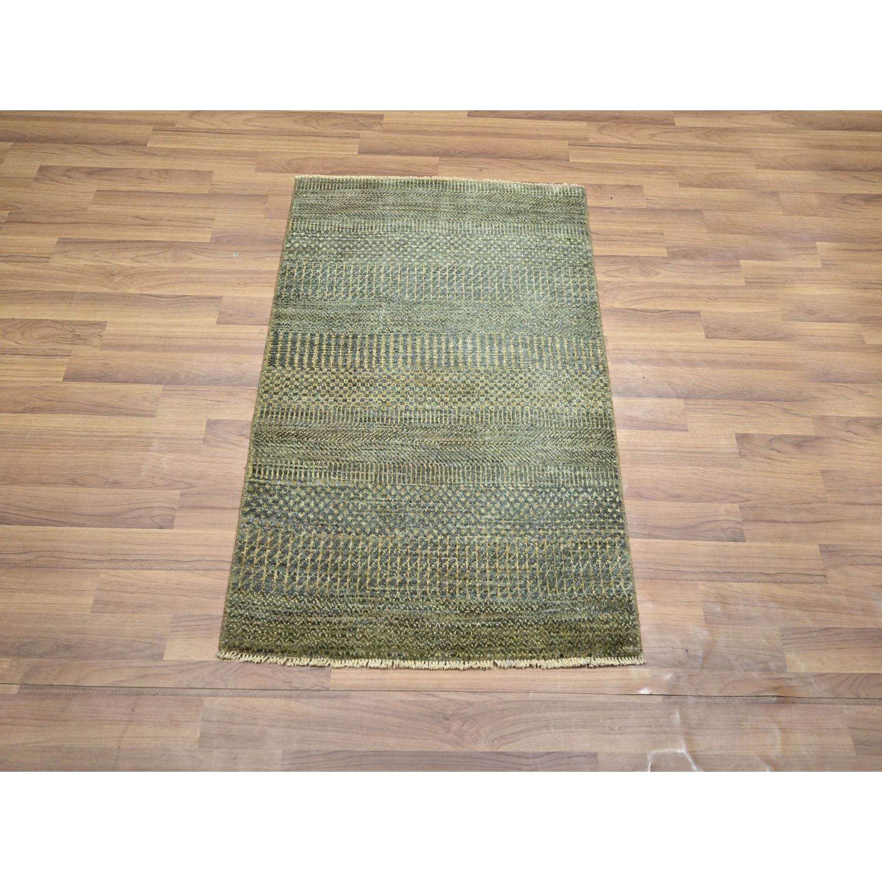 2'x3' Cedar Brown, Modern Grass Design, Hand Knotted, Wool With Touch Of Silk, Tone On Tone, Lush And Plush, Mat, Sample, Oriental Rug FWR459780