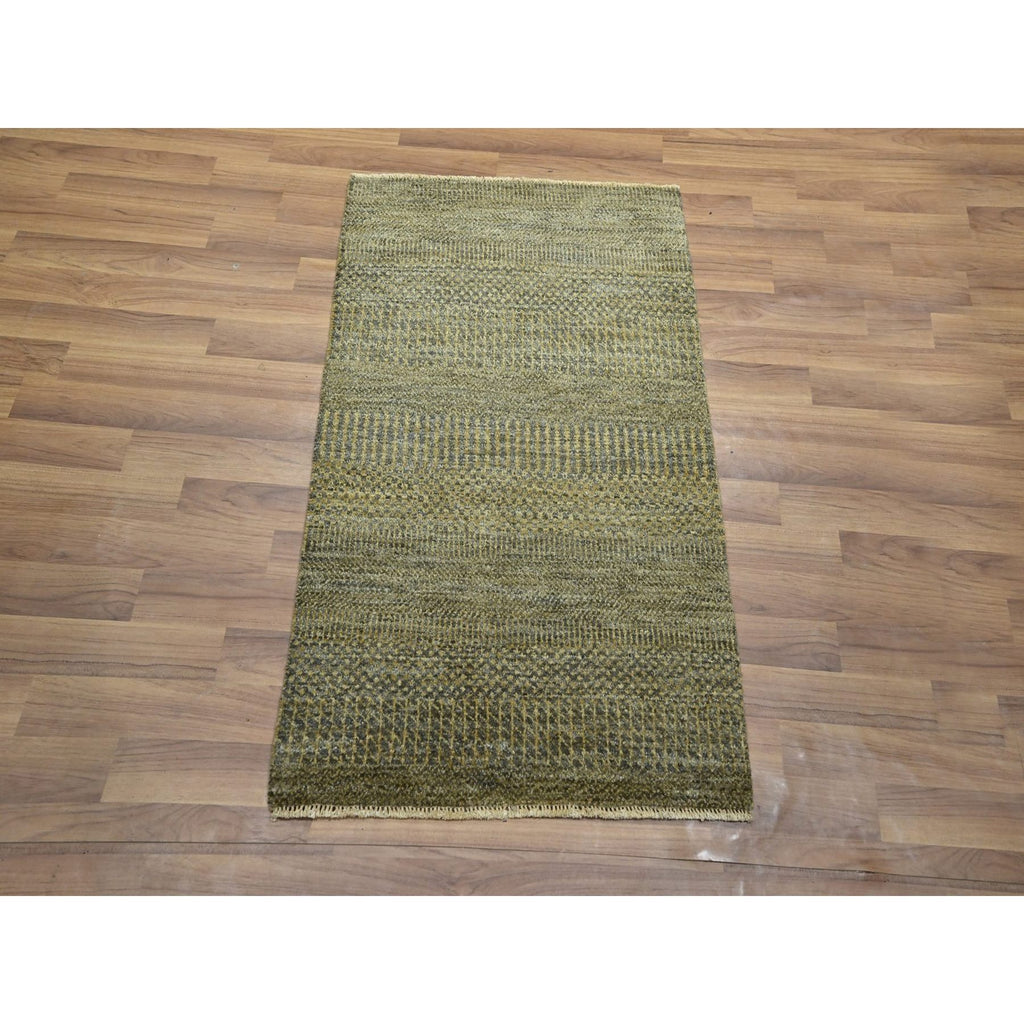 2'x3' Cedar Brown, Modern Grass Design, Hand Knotted, Wool With Touch Of Silk, Tone On Tone, Lush And Plush, Sample, Mat, Oriental Rug FWR459660