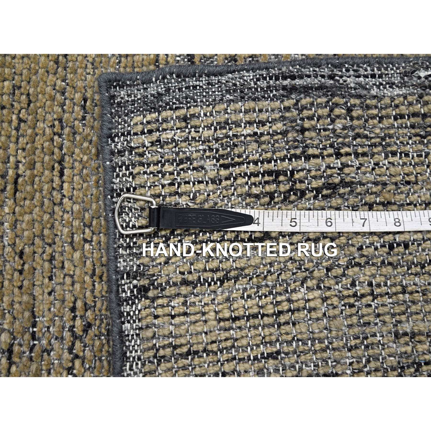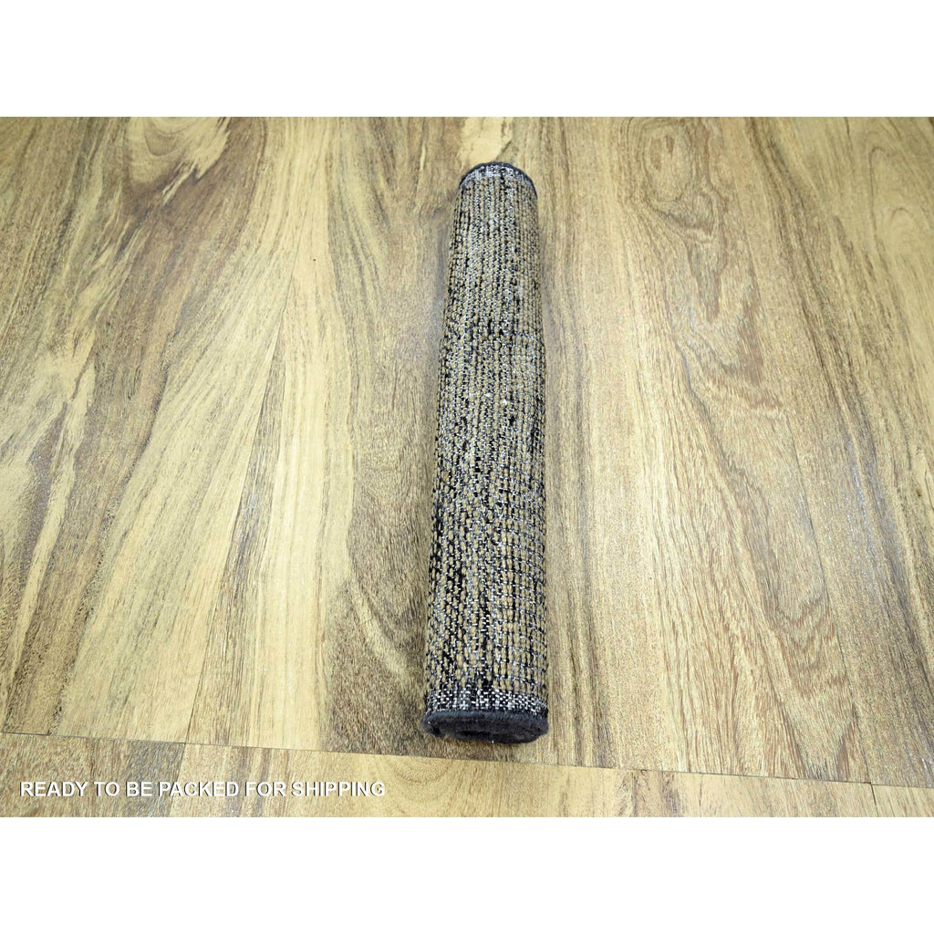 2'x3' Charcoal Black With Honey Brown, Oxidized And Distressed Grass Design With Exposed Warps, 100% Wool, Hand Knotted, Sample, Mat, Oriental Rug FWR457566