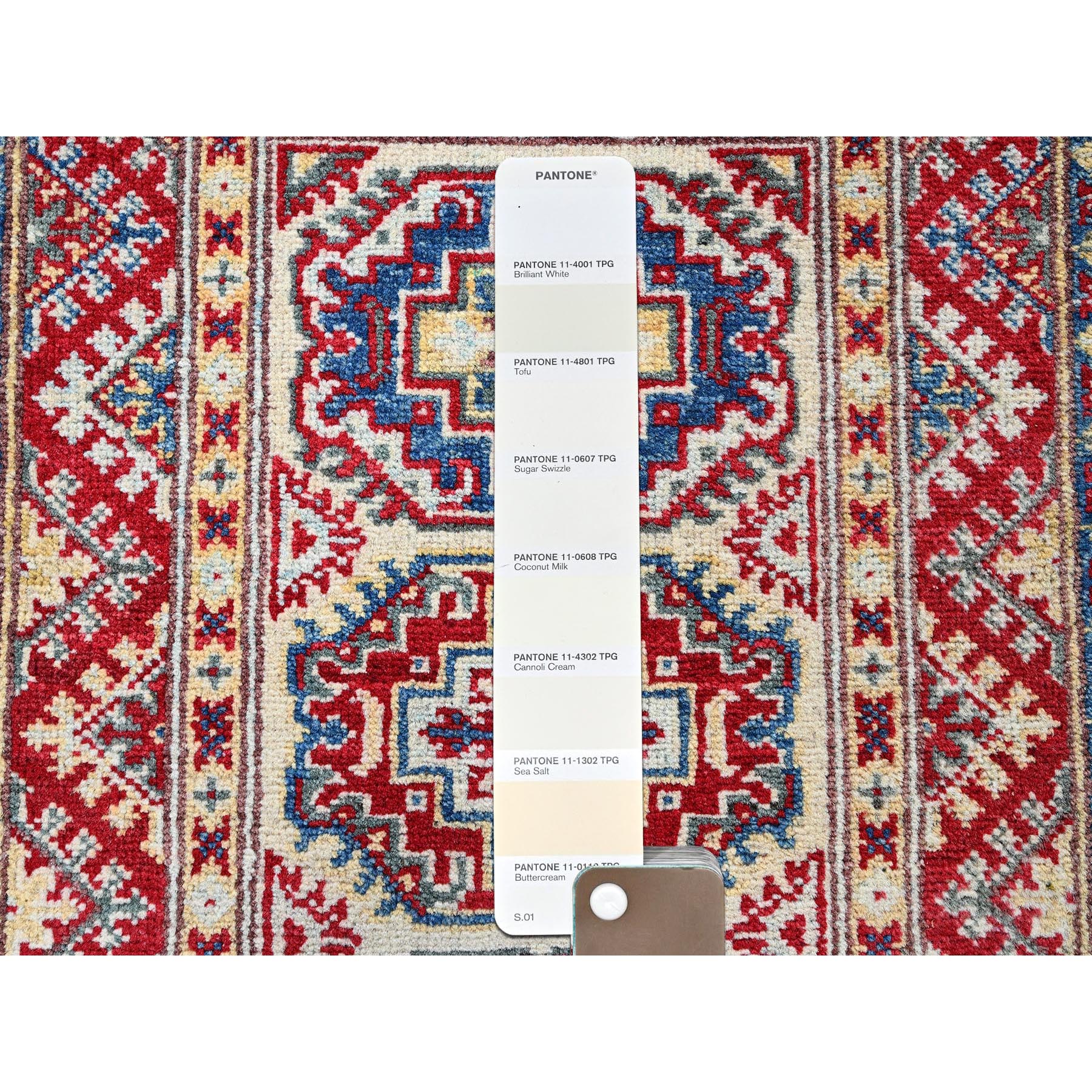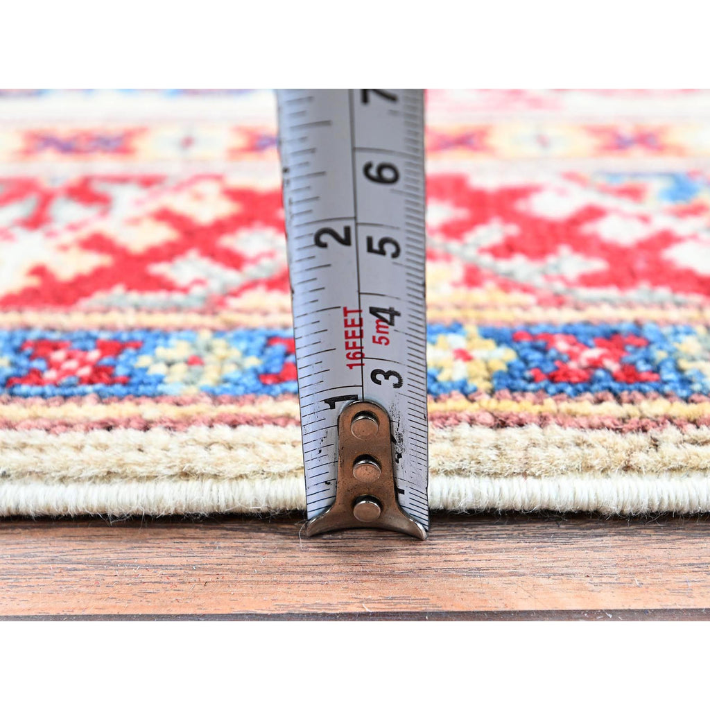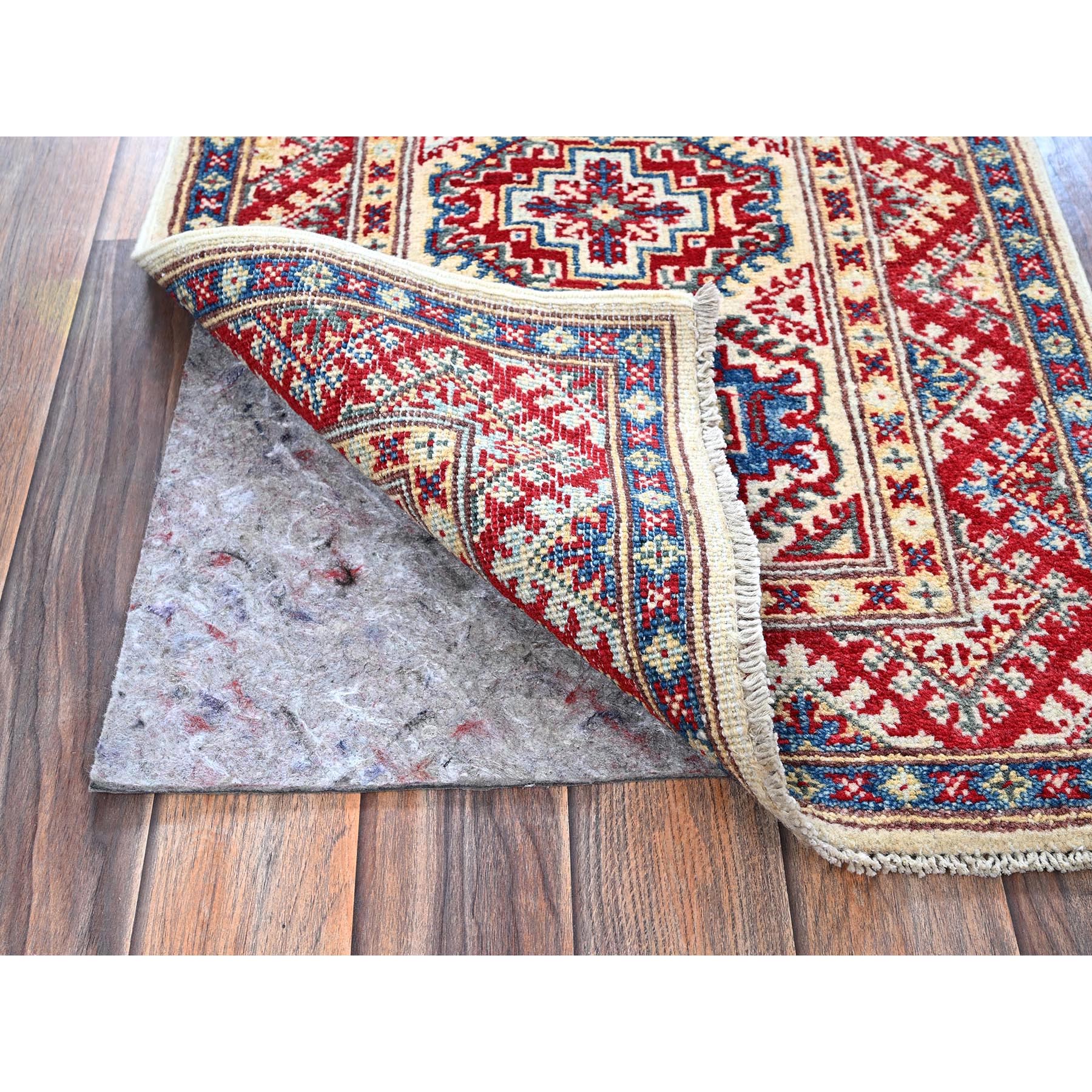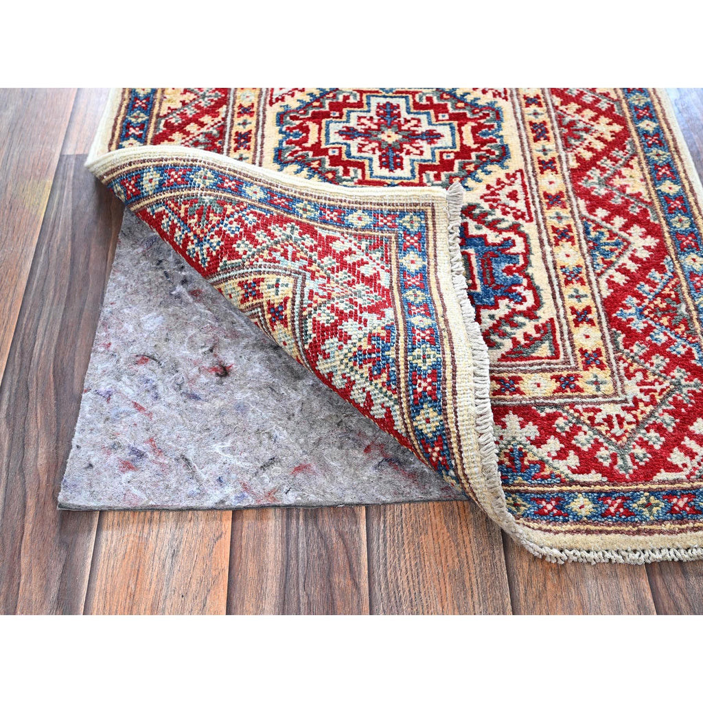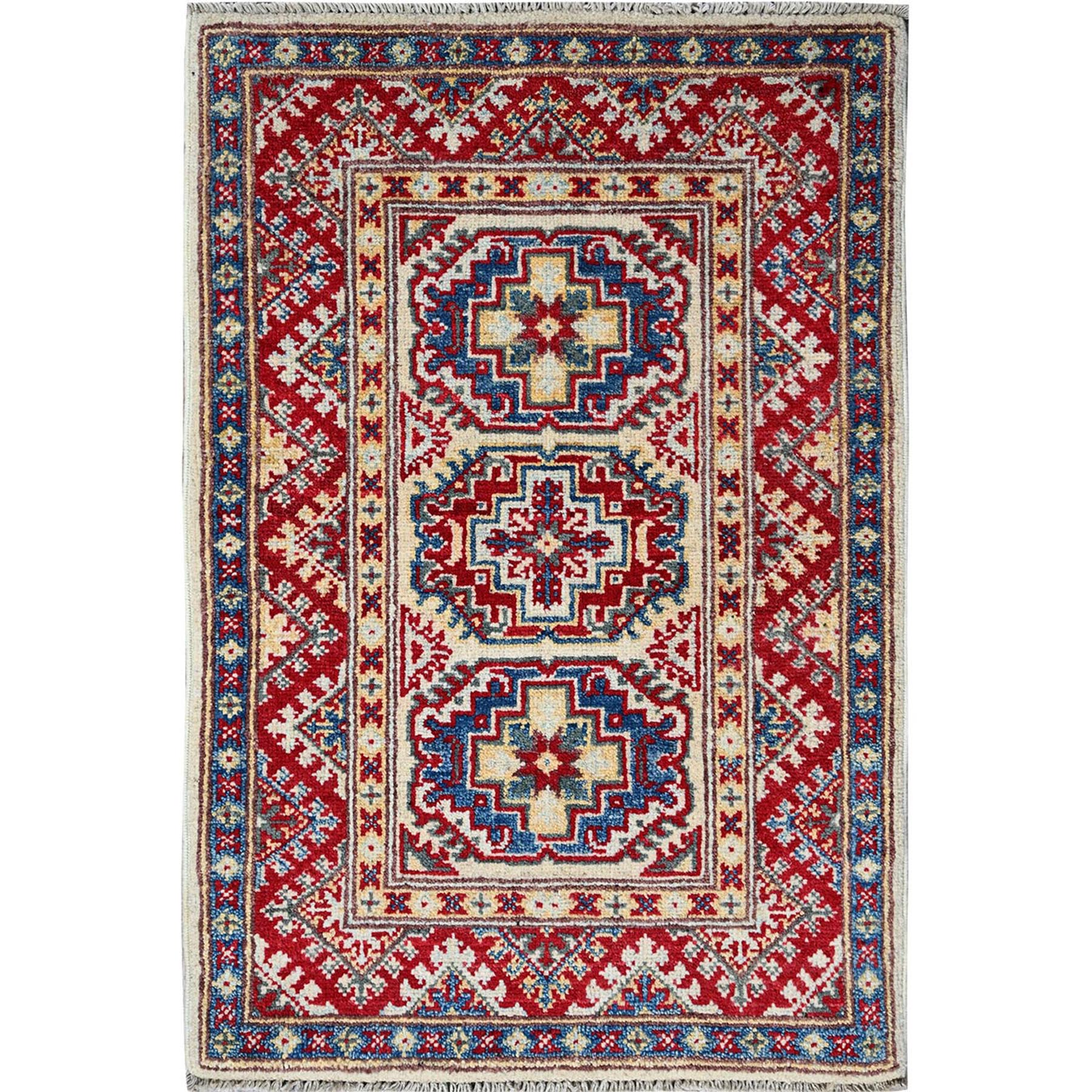 2'x3' Chiffon White, Colorful Kazak With Geometric Medallions Design, Vegetable Dyes, Soft And Vibrant Wool, Hand Knotted, Denser Weave, Sample, Mat, Oriental Rug FWR2202