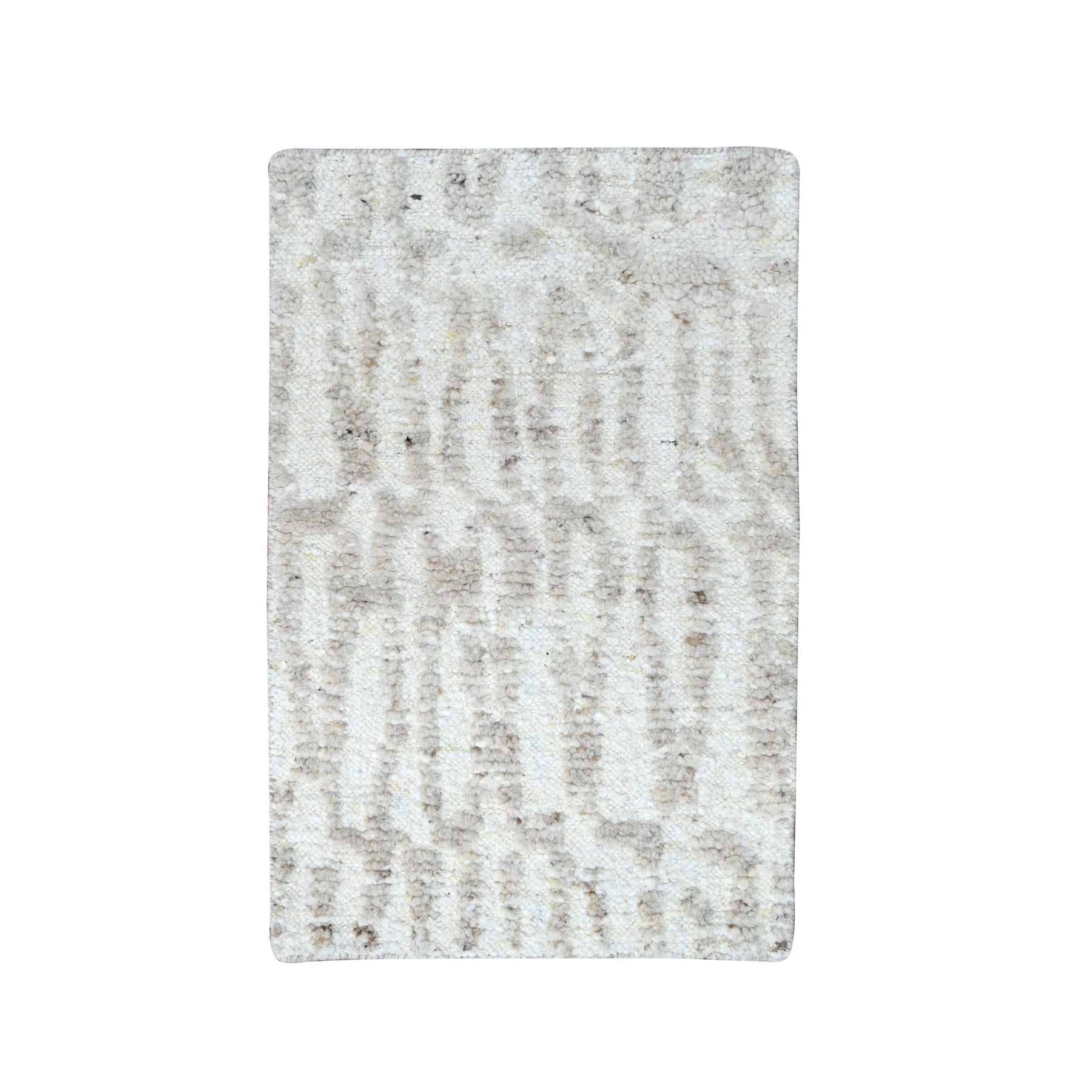 2'x3' Chiffon White, Minimalist Swedish Design, Hand Knotted, Natural Wool, Sample, Mat, Oriental Rug FWR62064