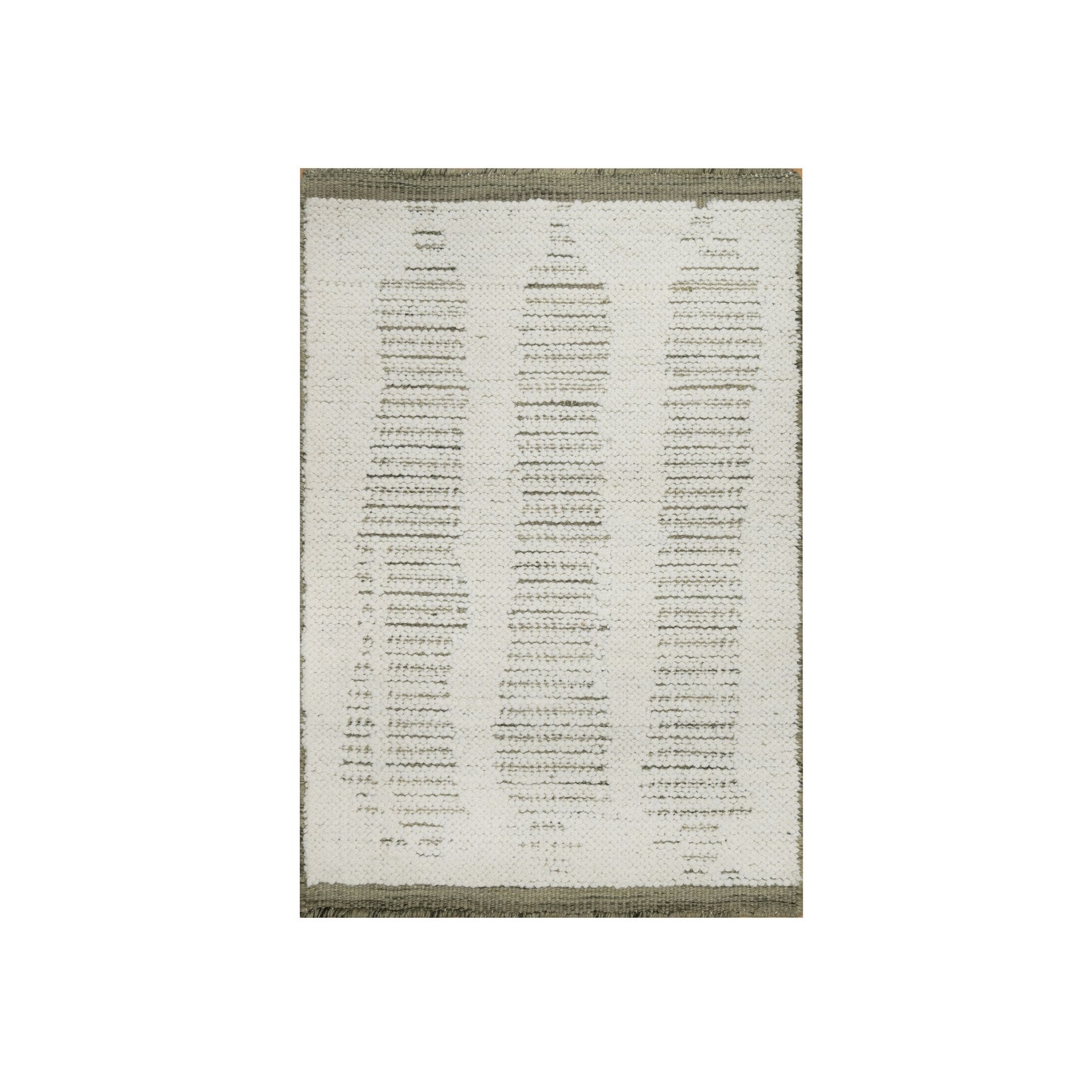 2'x3' Chiffon White, Undyed Natural Wool, Hand Woven, Flat Weave With Textured Pile, Mat, Sample, Oriental Rug FWR550380