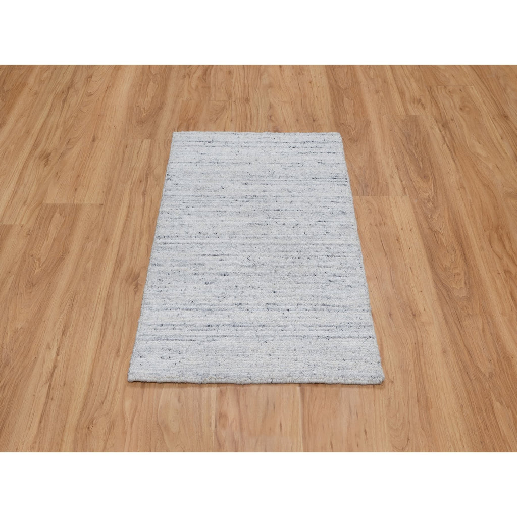 2'x3' Cloud Gray, Modern Striae Design, Tone On Tone, Thick And Plush, Pure Wool, Hand Loomed, Mat, Oriental Rug FWR544722