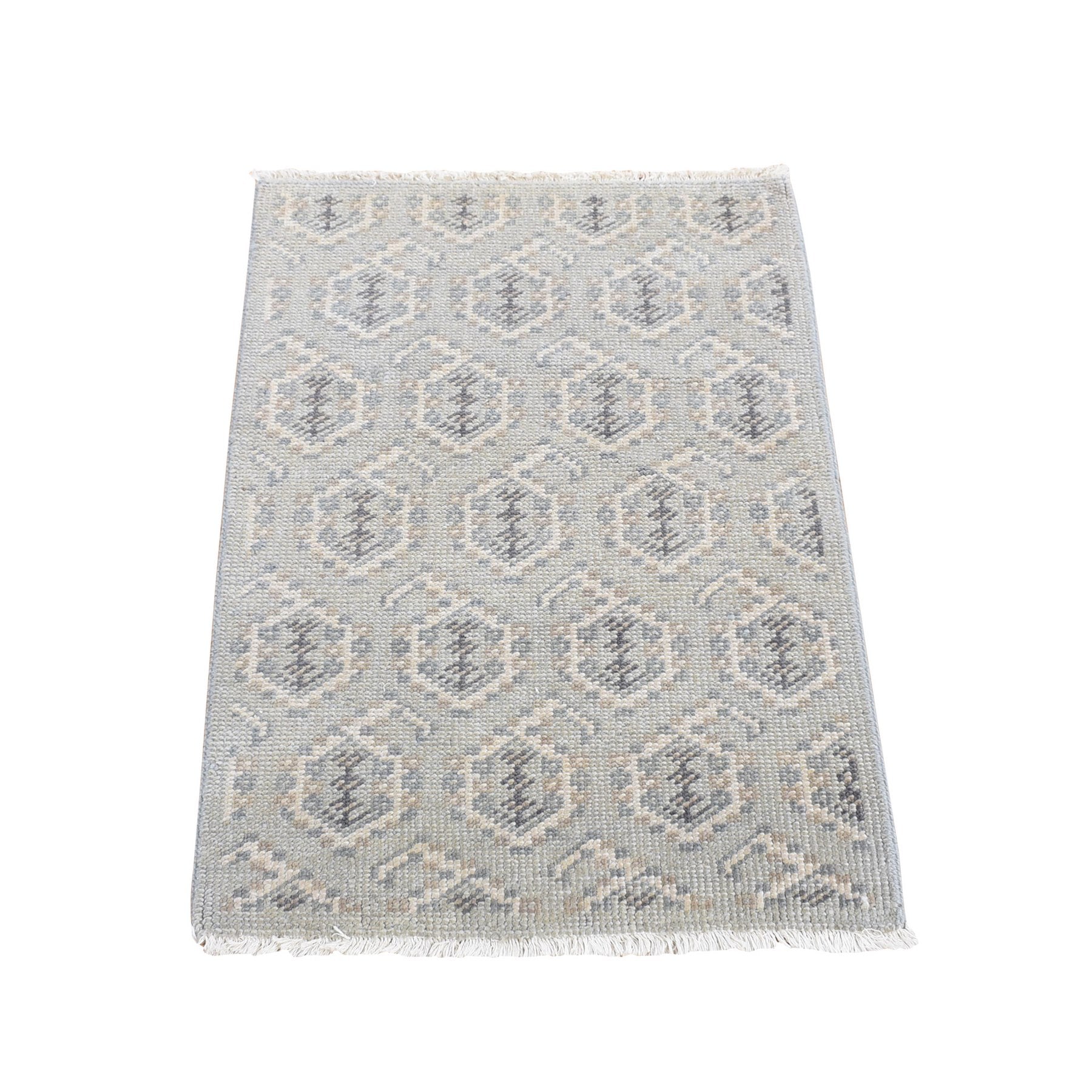 2'x3' Cloud Gray, Paisley Design, Turkish Knot, Pure Wool Hand Knotted Mat Oriental Rug FWR483468