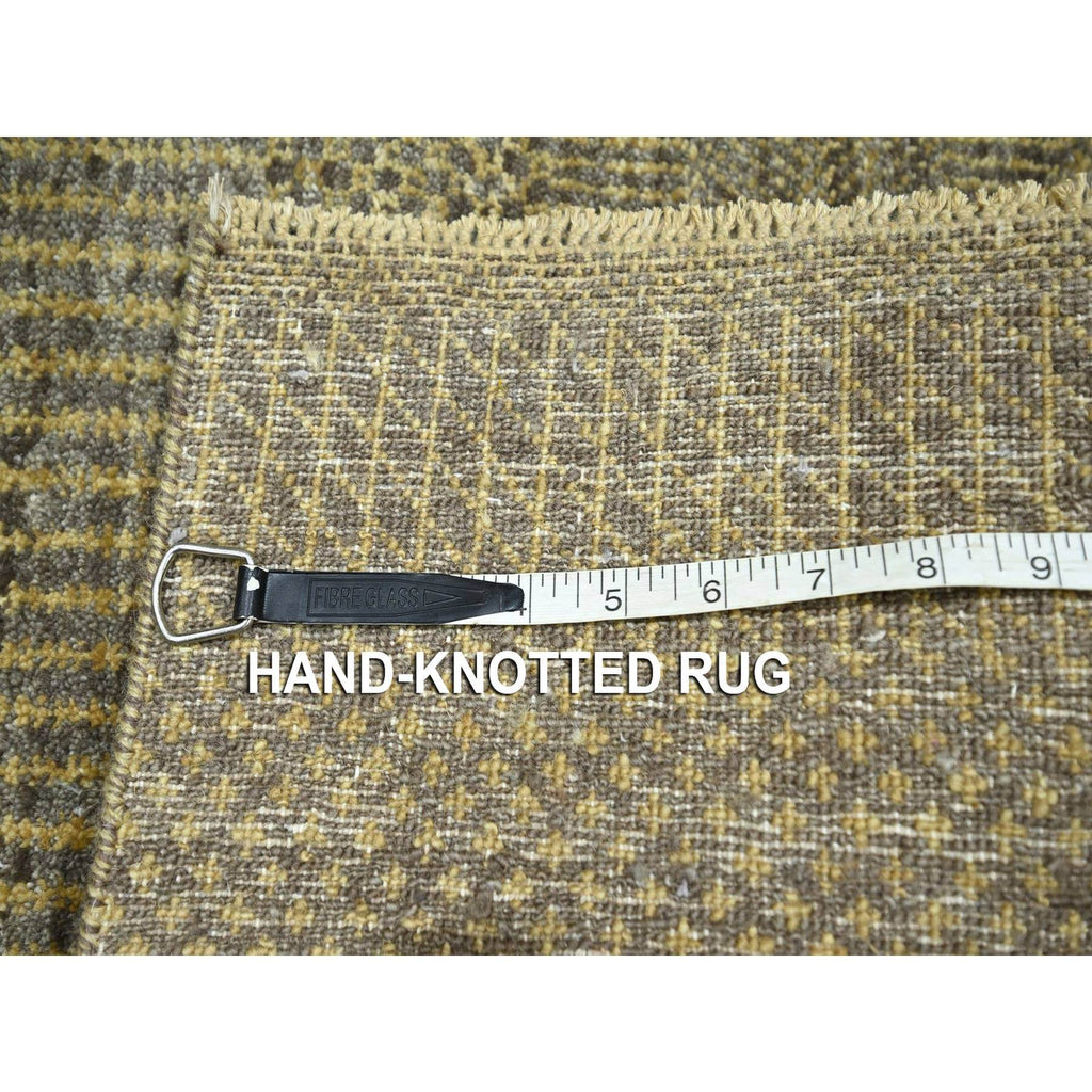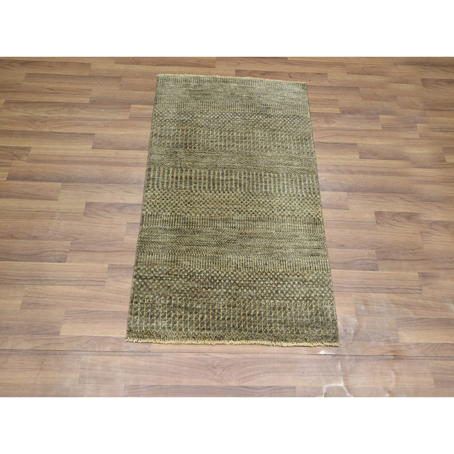 2'x3' Coffee Brown, Modern Grass Design, Hand Knotted, Wool With Touch Of Silk, Tone On Tone, Lush And Plush, Mat, Sample, Oriental Rug FWR459636