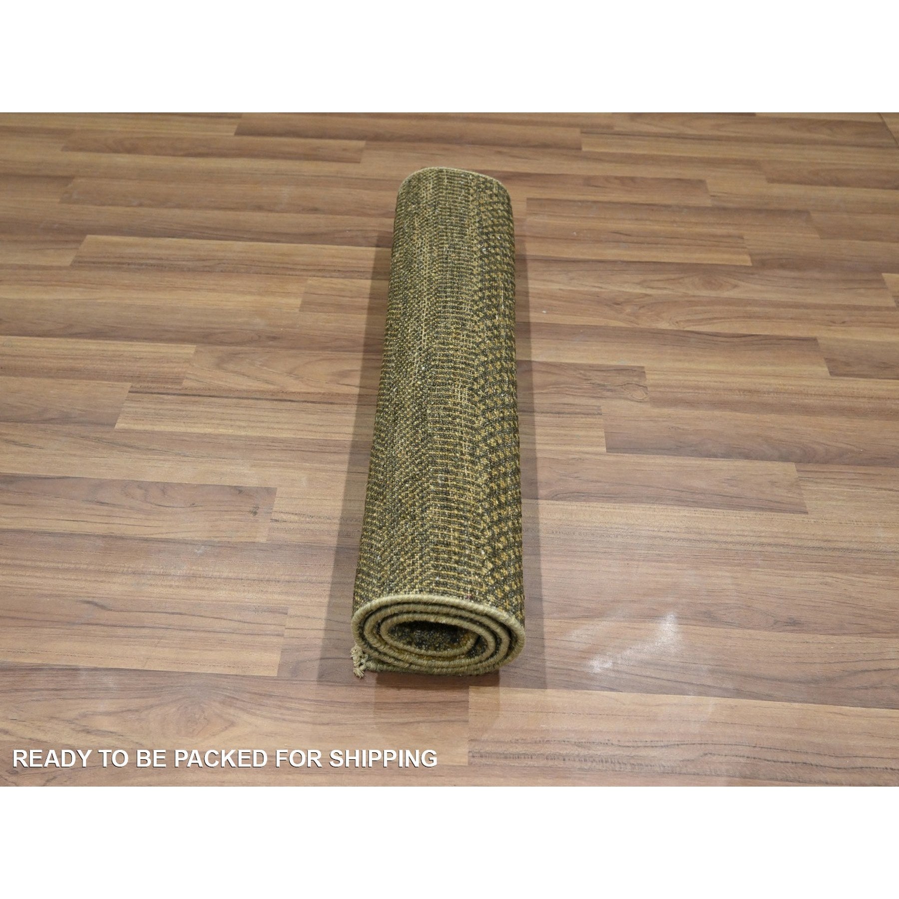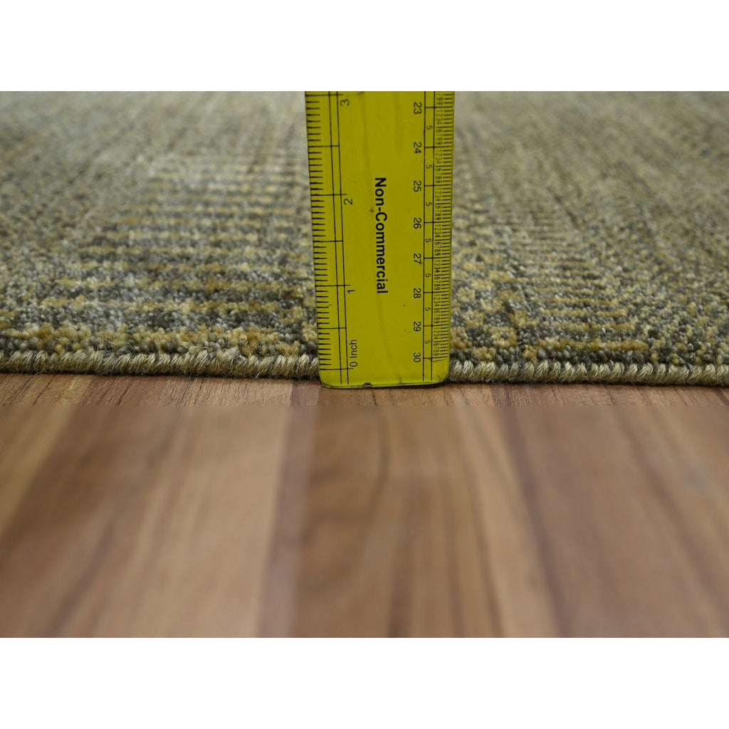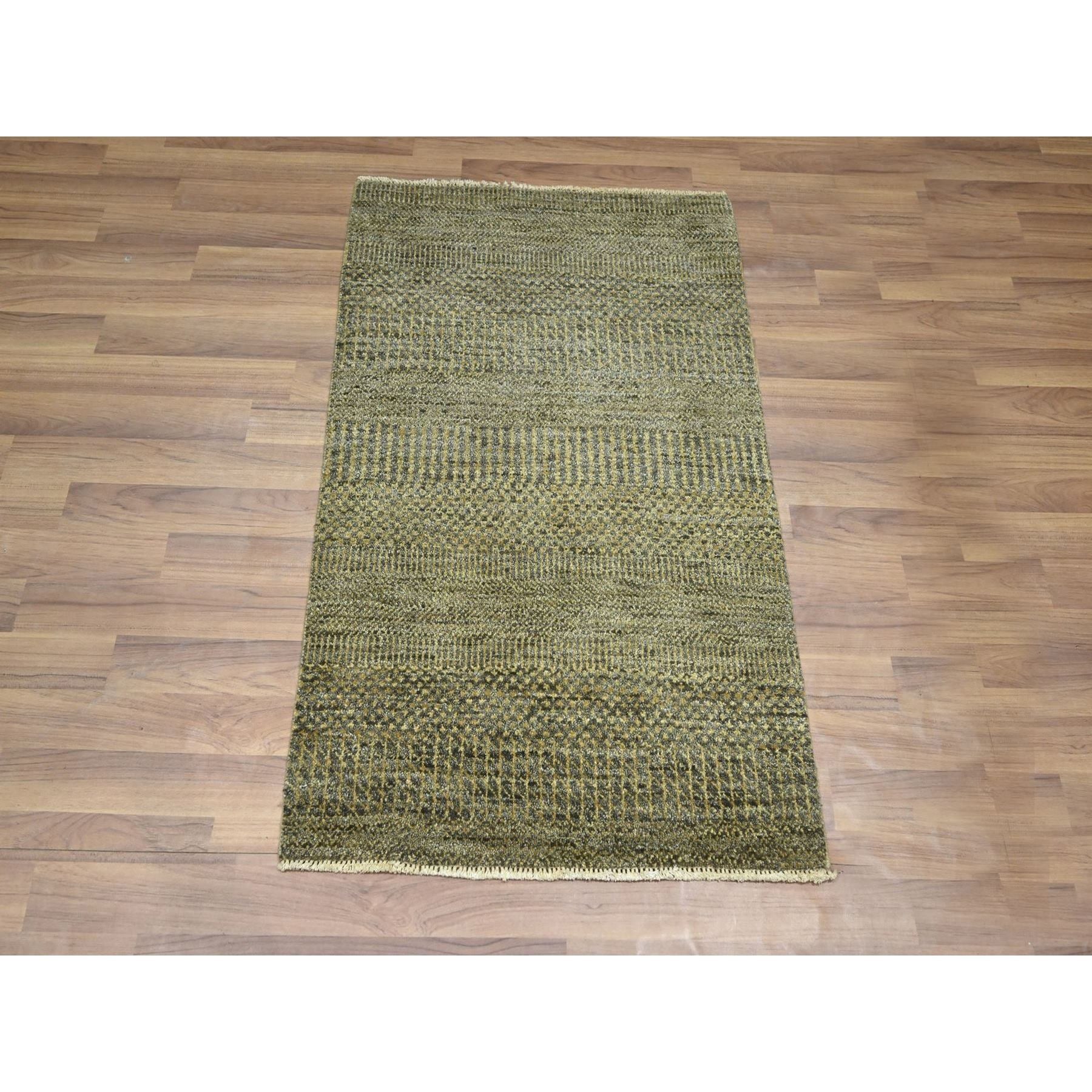 2'x3' Coffee Brown, Modern Grass Design, Wool With Touch Of Silk, Tone On Tone, Lush And Plush, Hand Knotted, Mat, Oriental Rug FWR459078