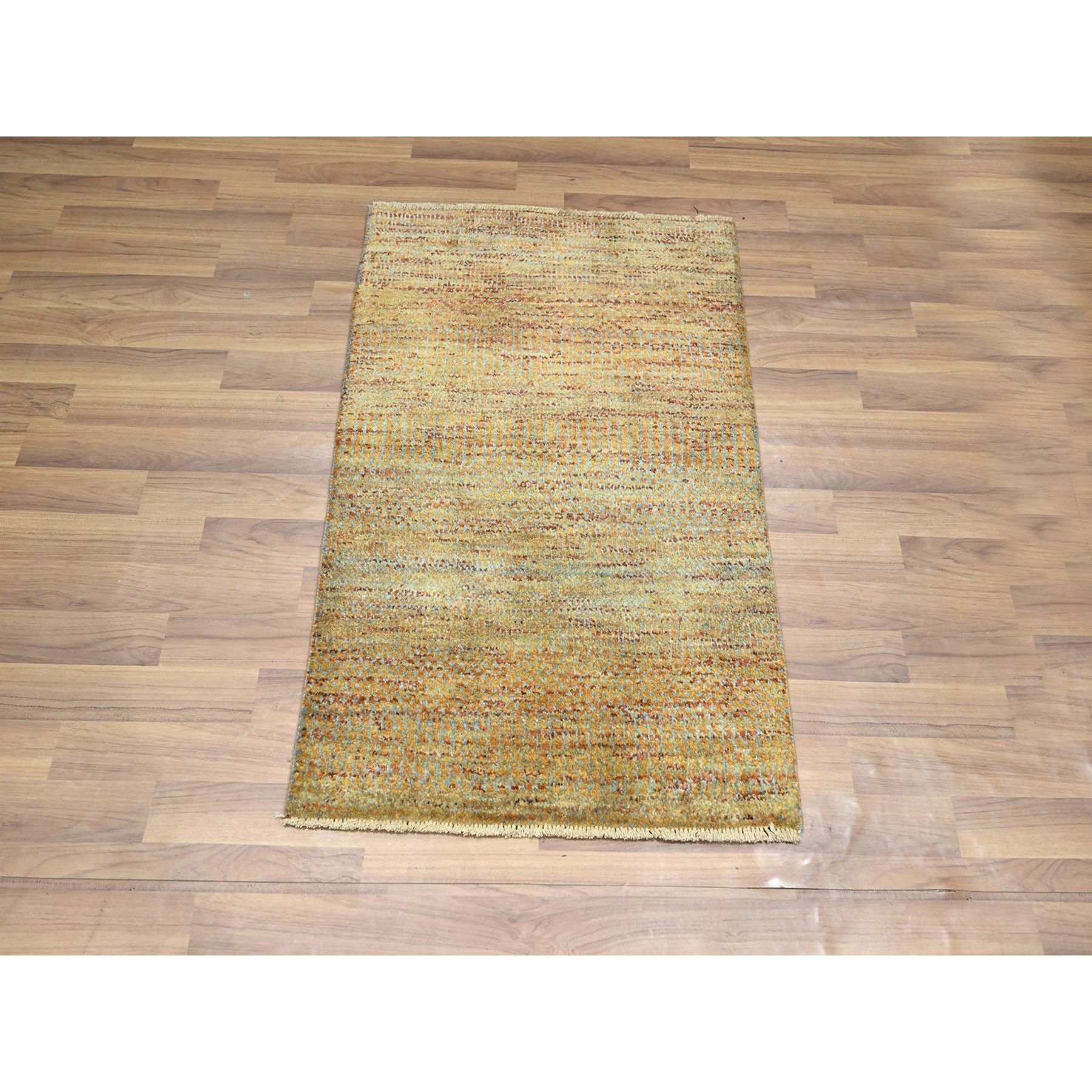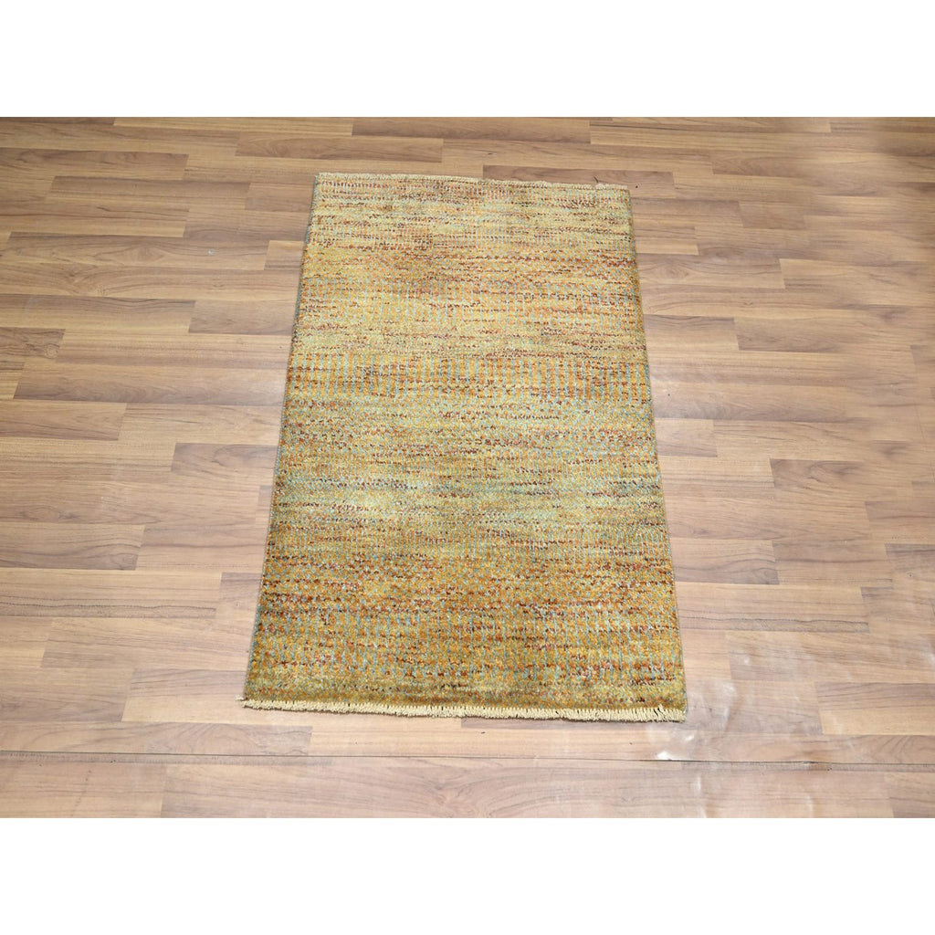 2'x3' Copper Brown, Modern Grass Design, Hand Knotted, Wool With Touch Of Silk, Tone On Tone, Lush And Plush, Sample, Mat, Oriental Rug FWR459966