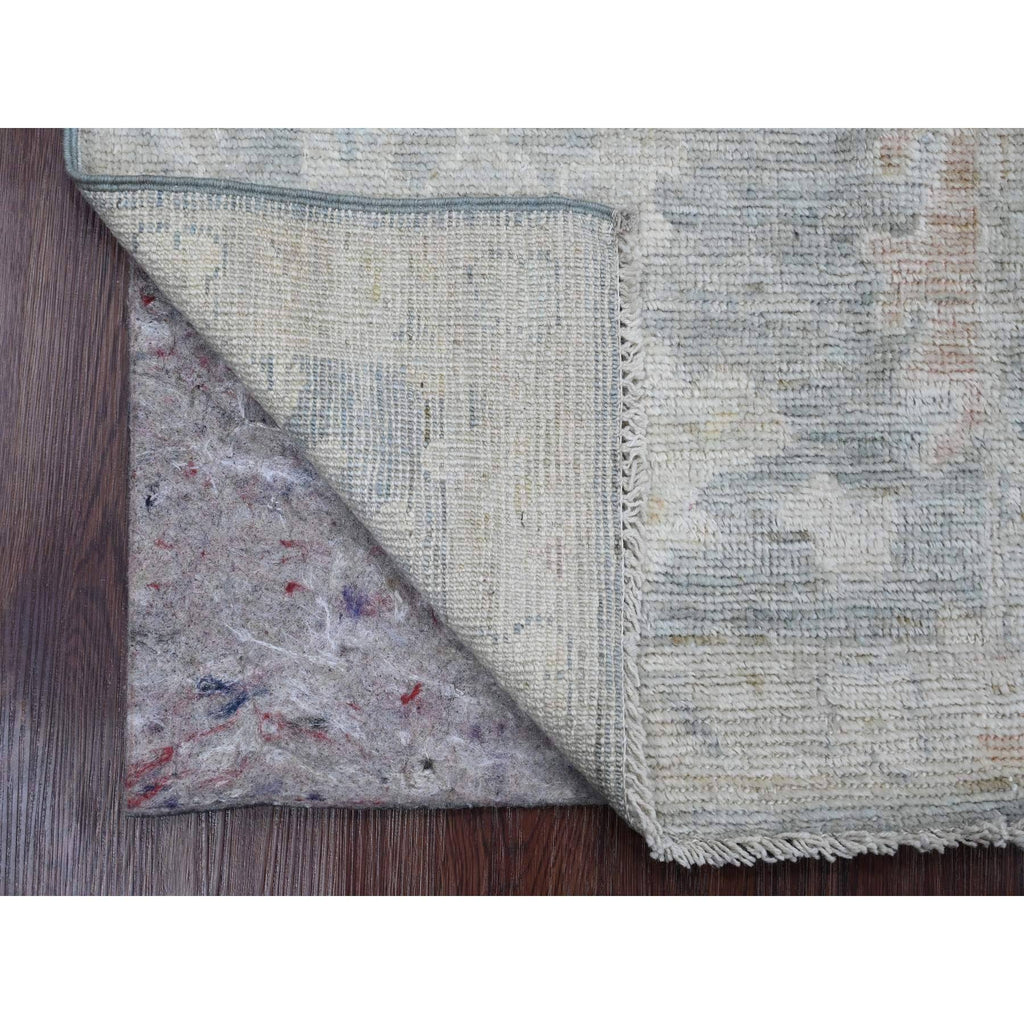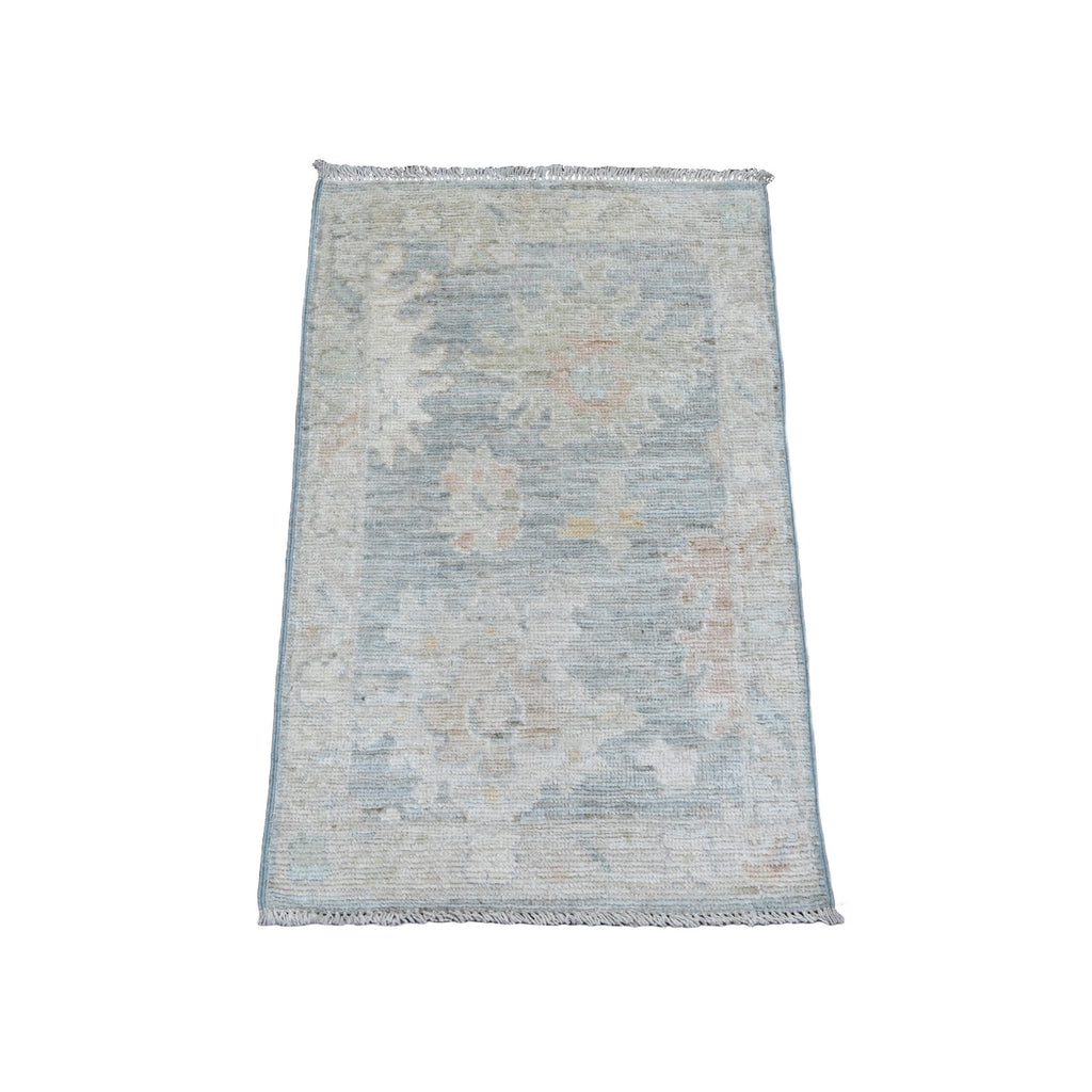 2'x3' Dim Gray, 100% Wool, Afghan Angora Oushak With Large Leaf Pattern, Hand Knotted, Natural Dyes, Mat, Oriental Rug FWR121962