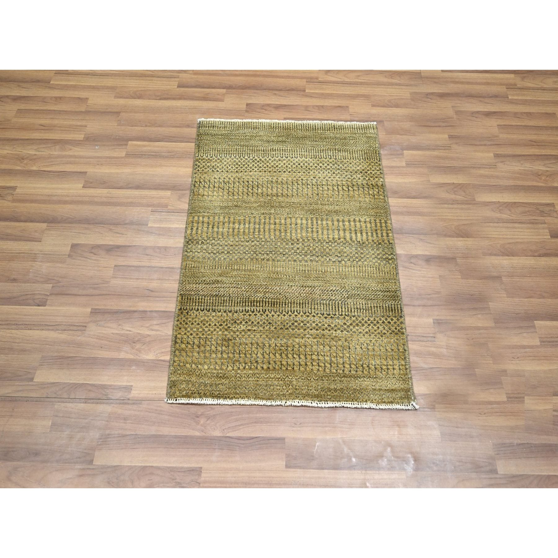 2'x3' Ecru Brown, Modern Grass Design, Wool With Touch Of Silk, Hand Knotted, Tone On Tone, Lush And Plush, Mat, Sample, Oriental Rug FWR458766