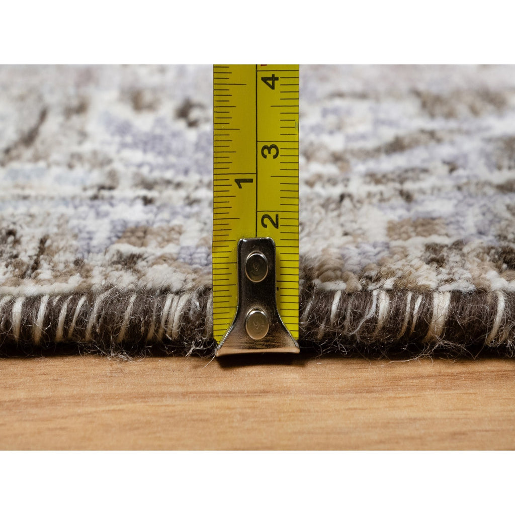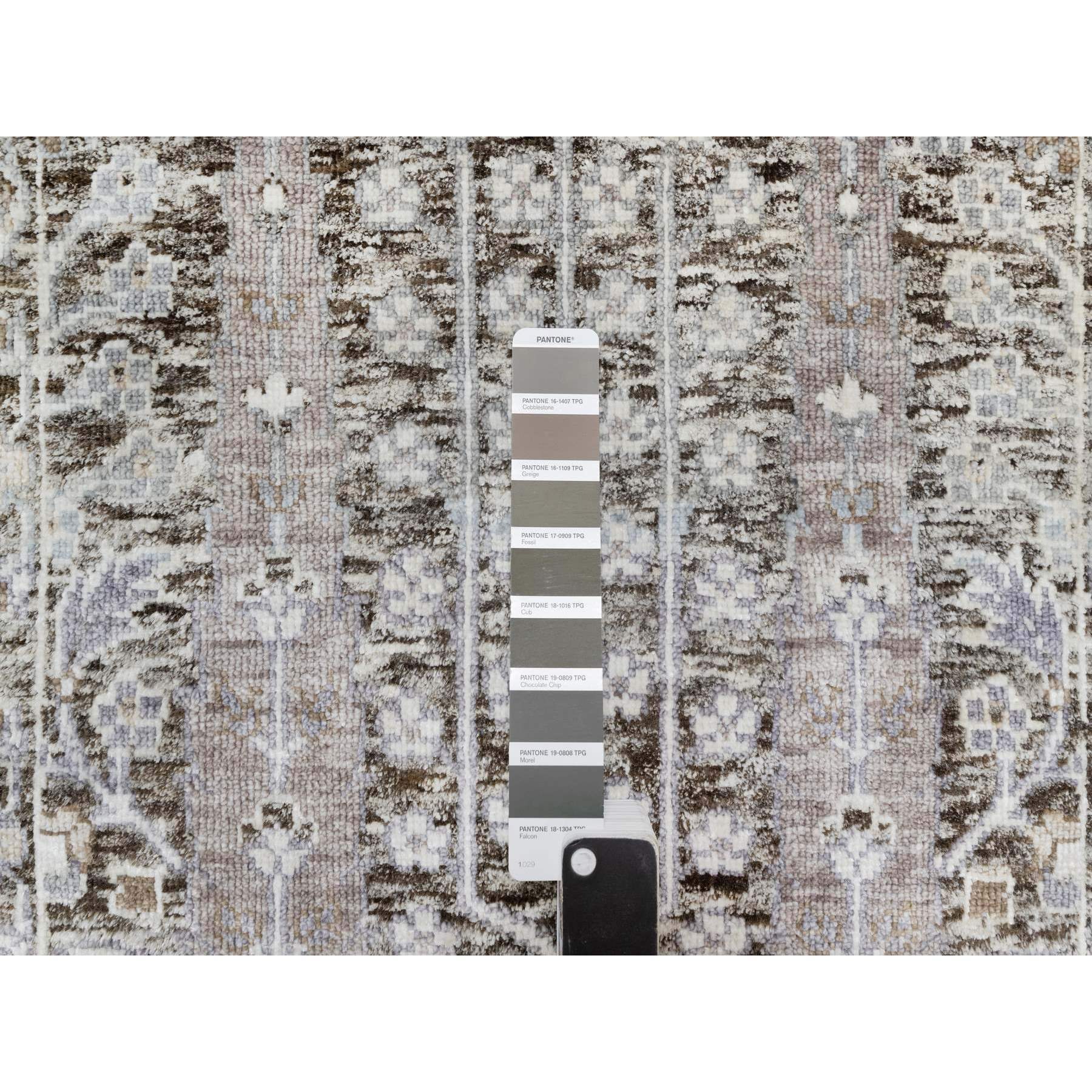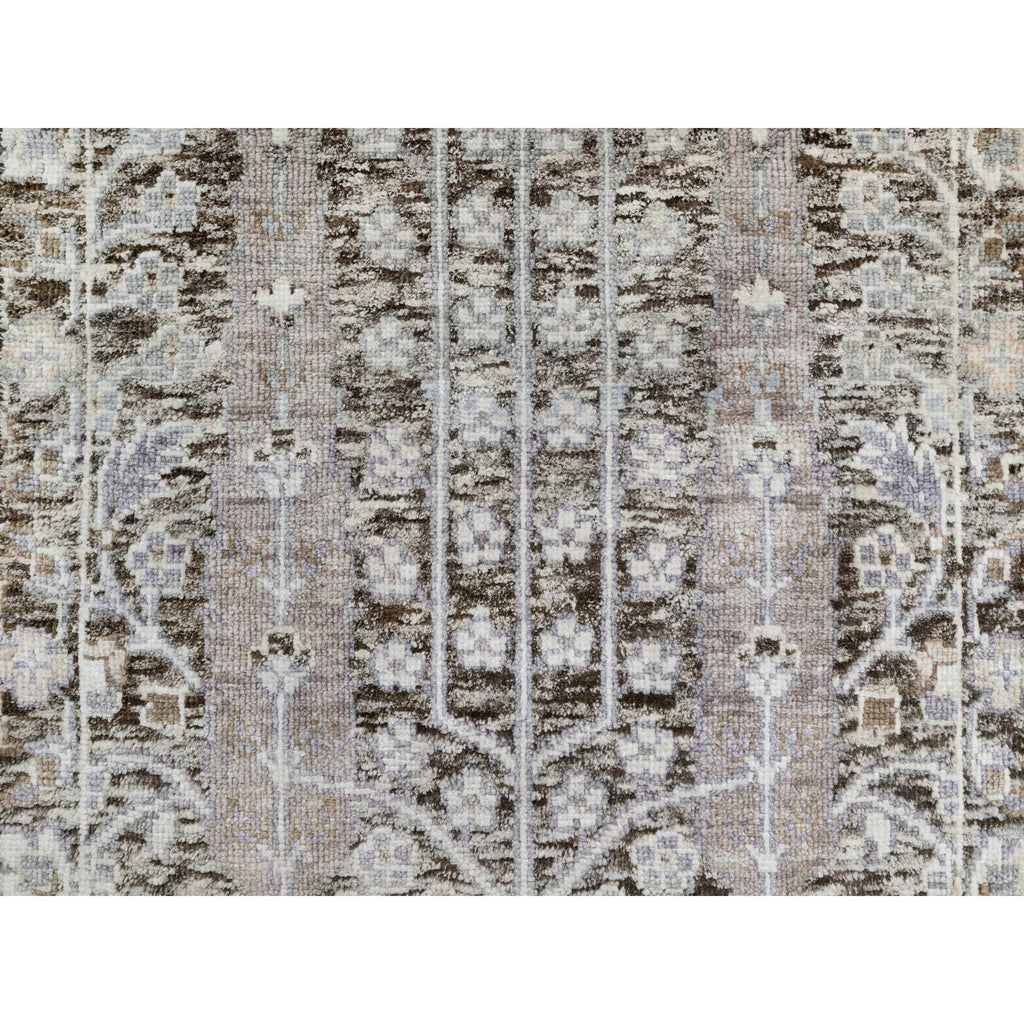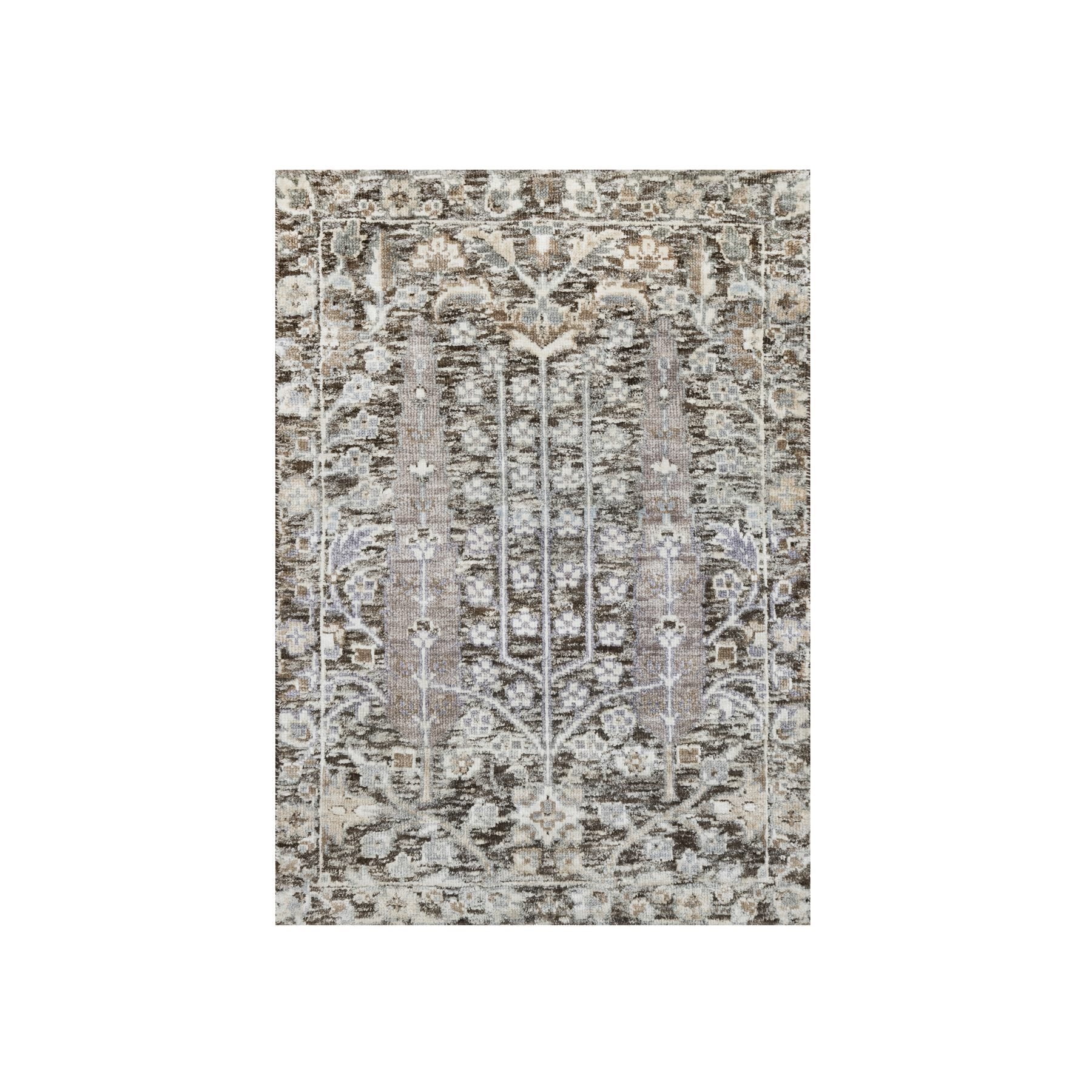 2'x3' Falcon Gray, Silk With Textured Wool, Hand Knotted With Willow And Cypress Tree Design, Oriental Mat Rug FWR545706