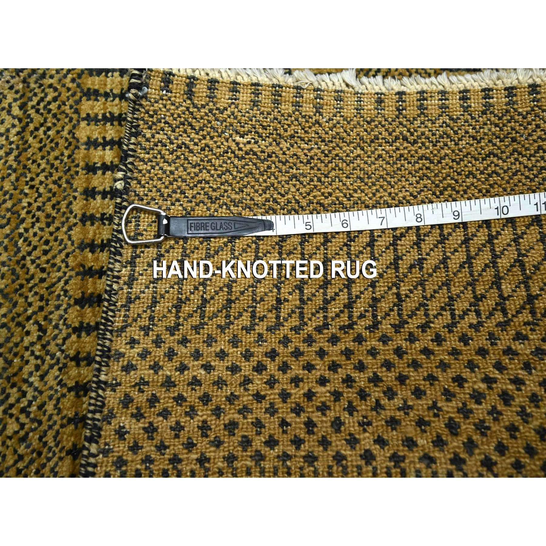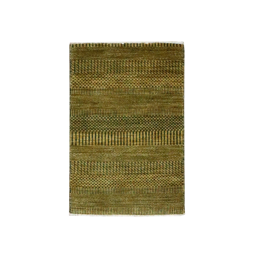2'x3' Golden Brown, Wool With Touch Of Silk, Tone On Tone, Lush And Plush, Hand Knotted, Modern Grass Design, Sample, Mat, Oriental Rug FWR459174