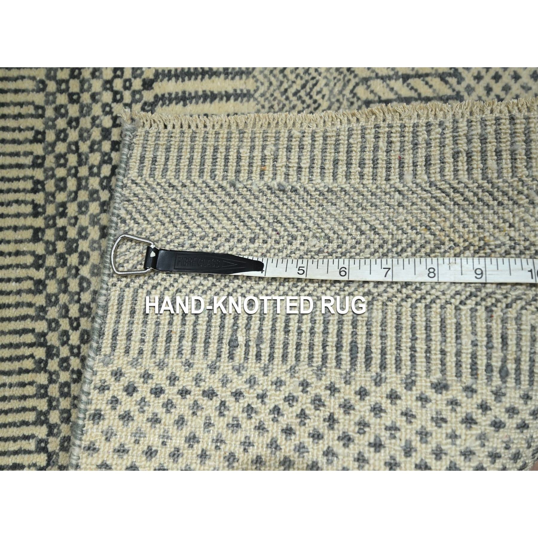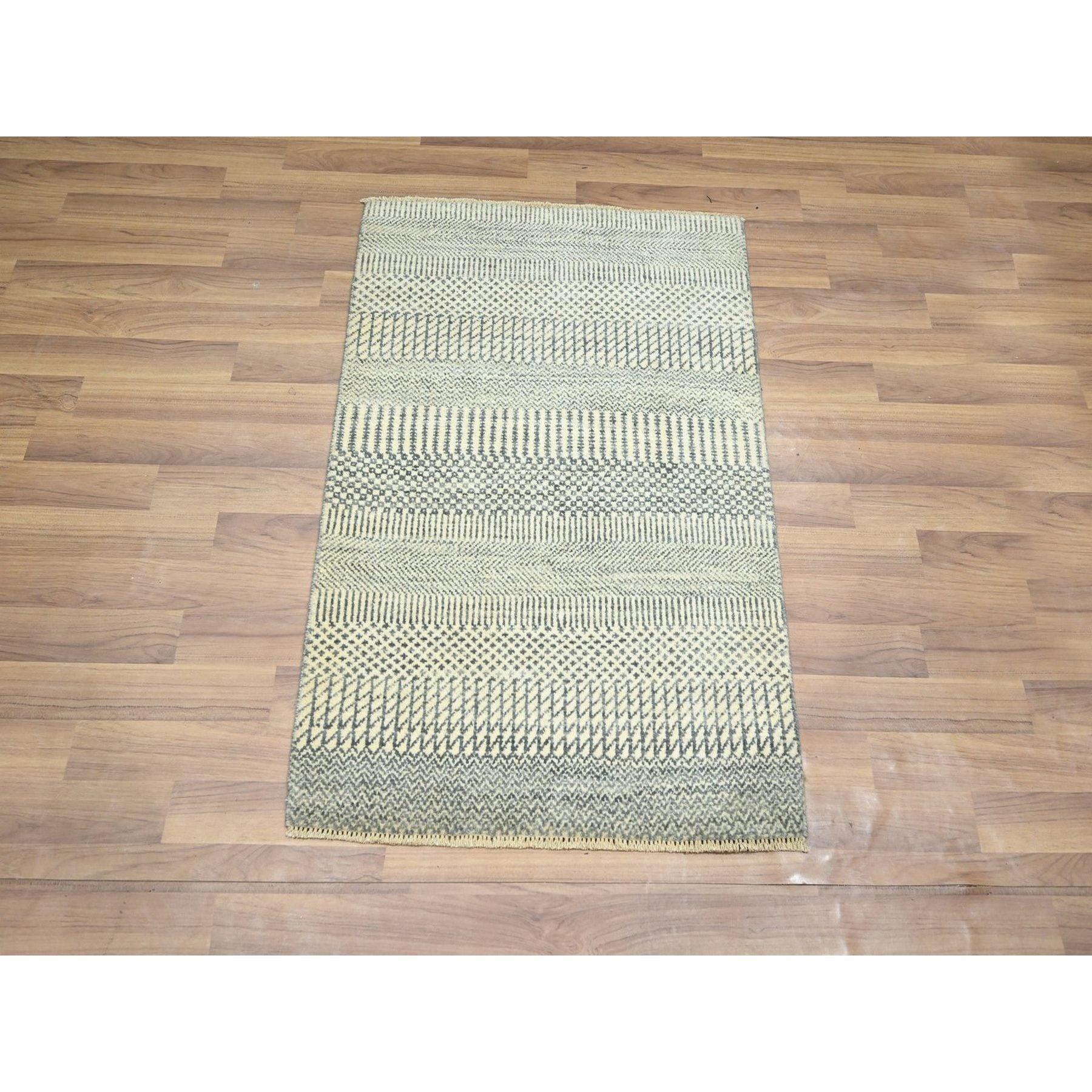 2'x3' Gray-beige, Modern Grass Design, Hand Knotted, Wool With Touch Of Silk, Tone On Tone, Lush And Plush, Sample, Mat, Oriental Rug FWR459696