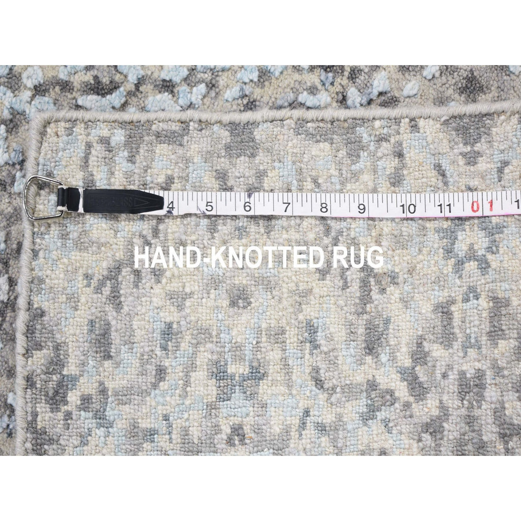2'x3' Gray Wool And Silk Abstract Design Hand Knotted Oriental Rug FWR354780