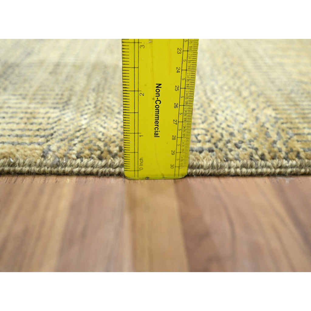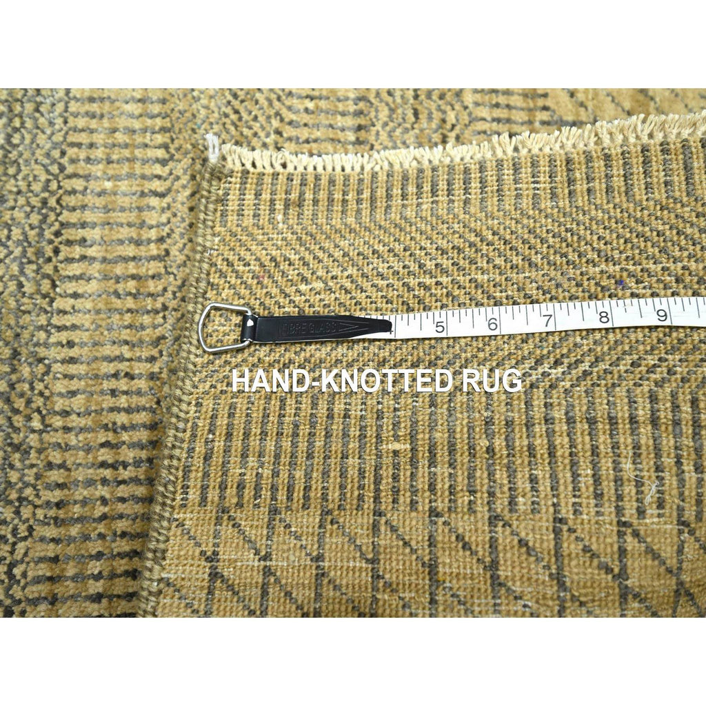 2'x3' Honey Brown, Modern Grass Design, Hand Knotted, Wool With Touch Of Silk, Tone On Tone, Lush And Plush, Mat, Sample, Oriental Rug FWR458790