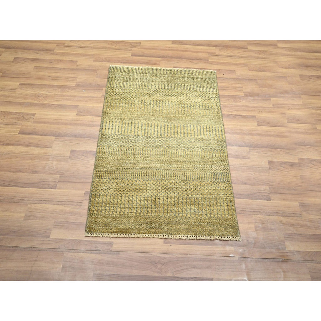 2'x3' Honey Brown, Modern Grass Design, Hand Knotted, Wool With Touch Of Silk, Tone On Tone, Lush And Plush, Sample, Mat, Oriental Rug FWR459738