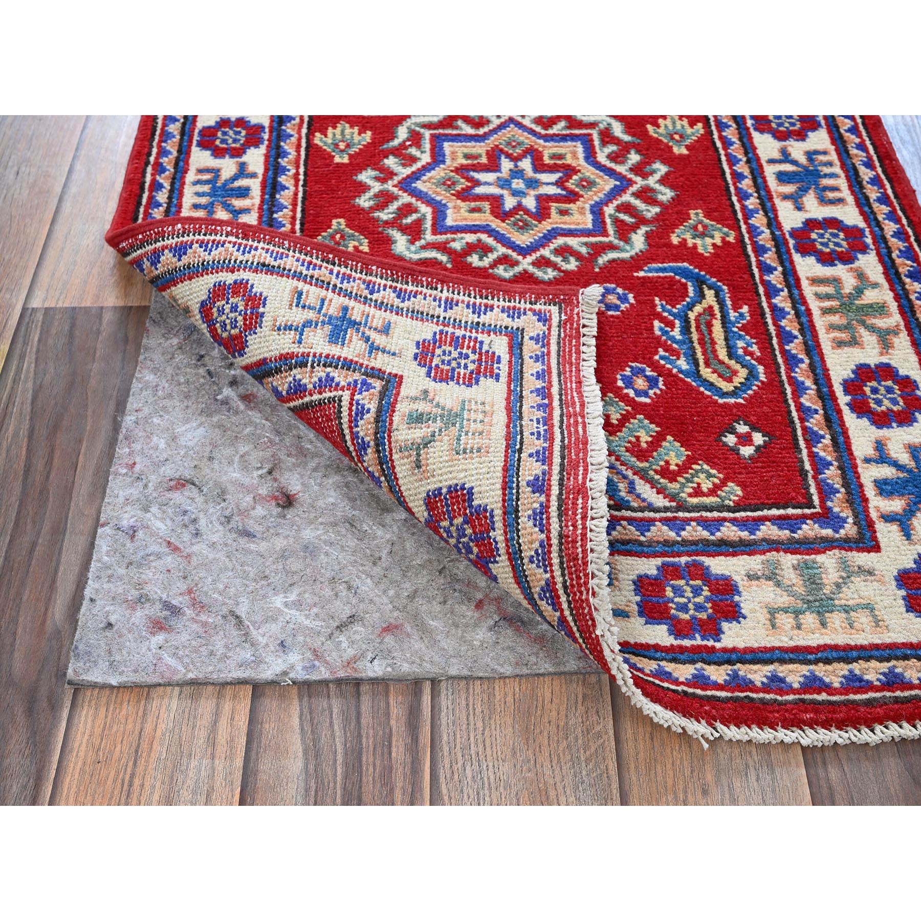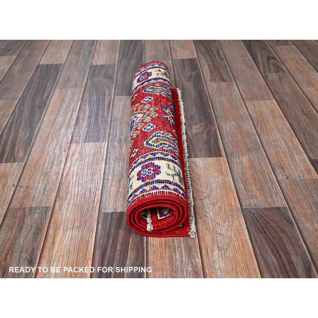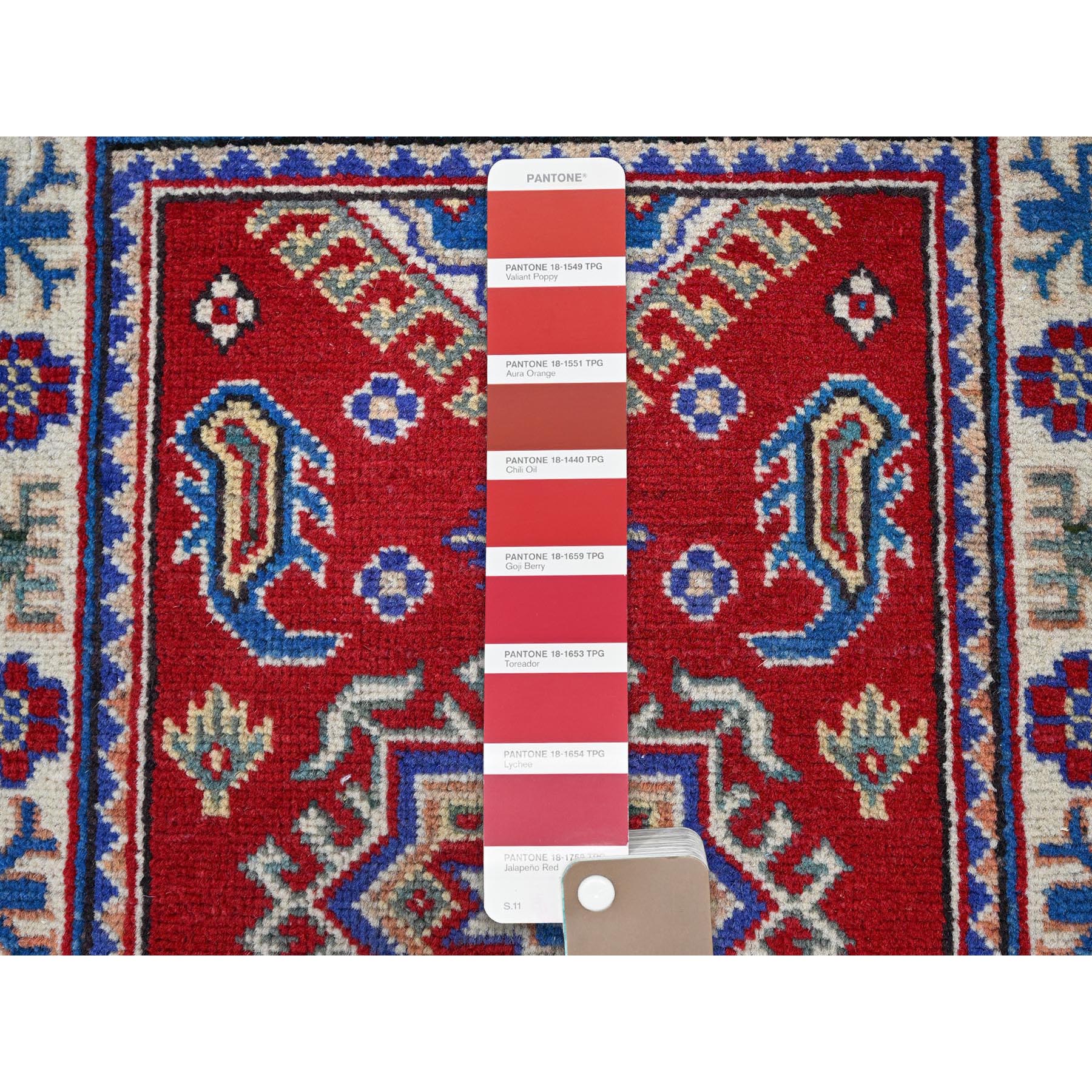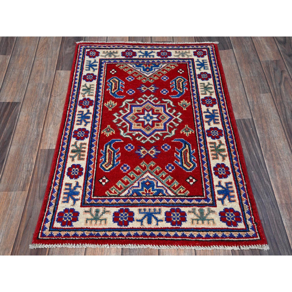 2'x3' Imperial Red, Kazak With Geometric Medallion Design, Vegetable Dyes, Hand Knotted, Soft And Vibrant Wool, Denser Weave, Sample, Mat, Oriental Rug FWR2292