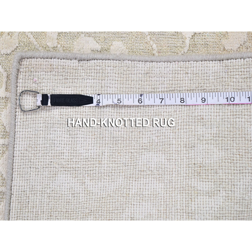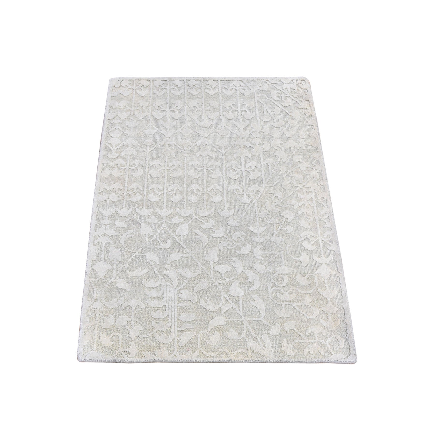 2'x3' Ivory Hand Knotted Pure Silk With Textured Wool Tone On Tone Oriental Rug FWR357228