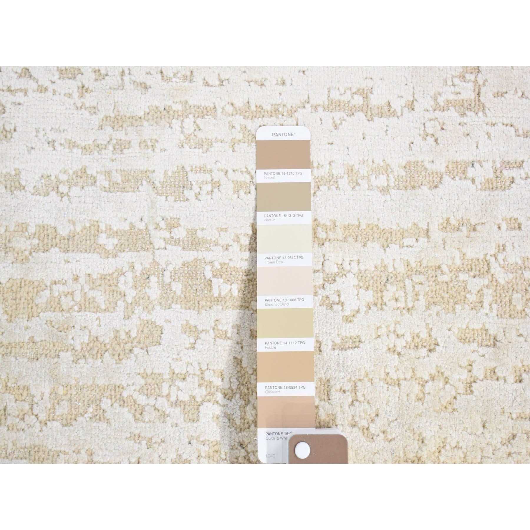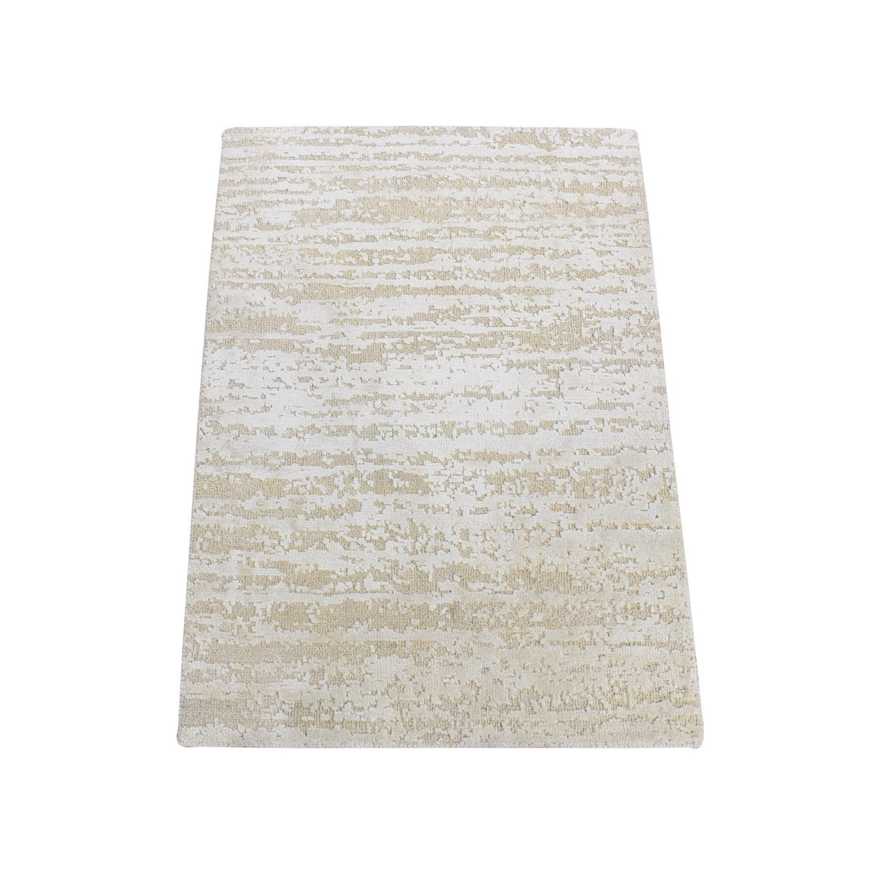 2'x3' Ivory, Modern Design, Pure Silk With Textured Wool, Hand Knotted, Mat Oriental Rug FWR482580