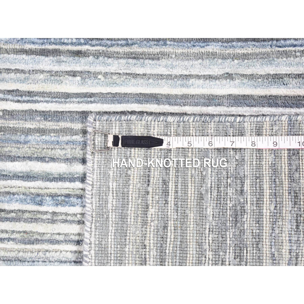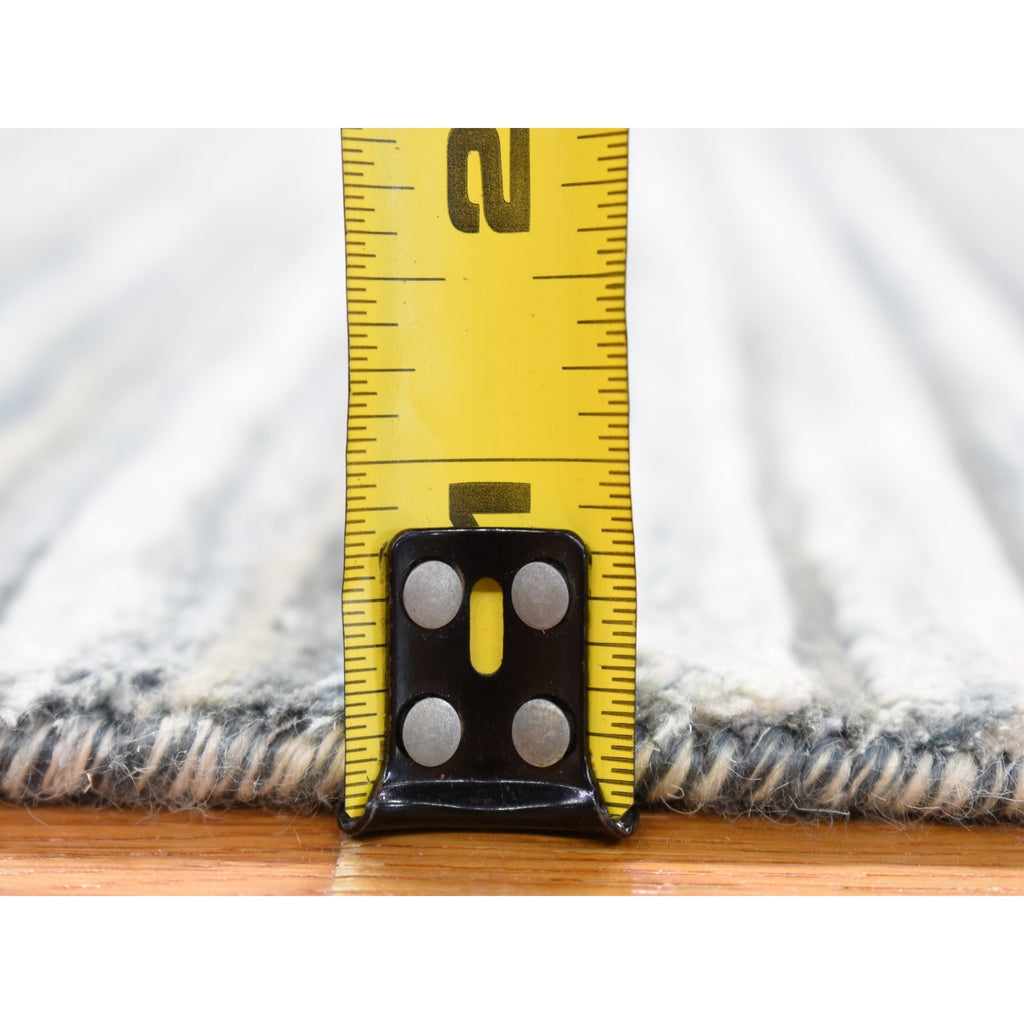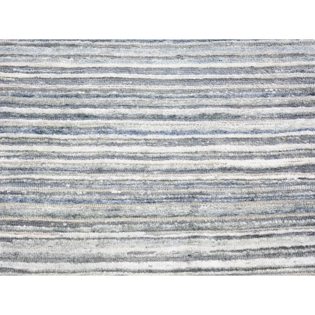 2'x3' Ivory Modern, Wool And Pure Silk With Striae Design, Hand Knotted, Oriental, Mat Rug FWR401796