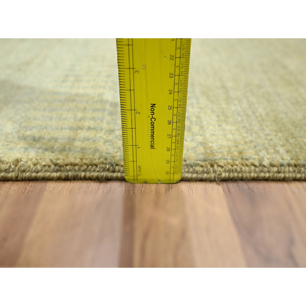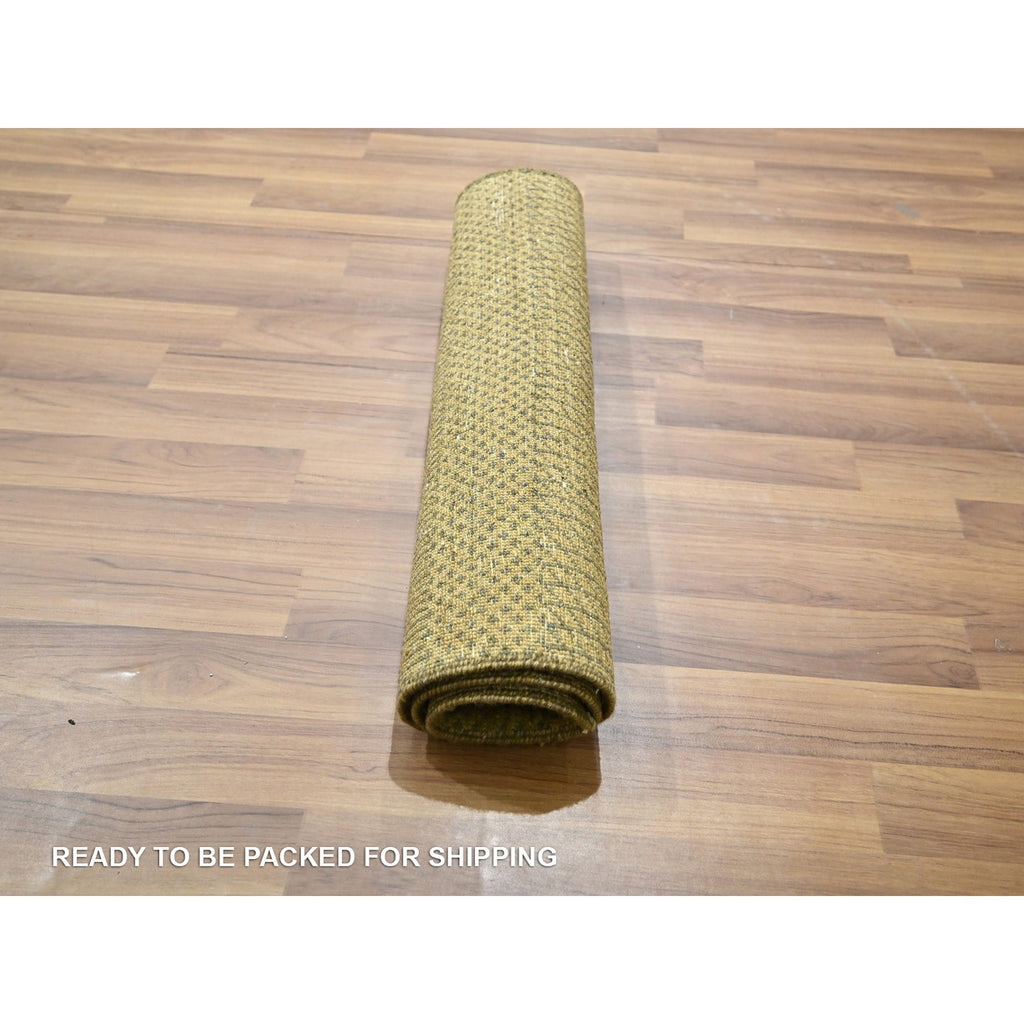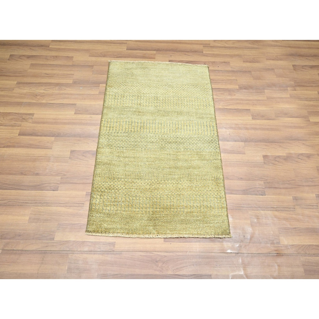 2'x3' Khaki Brown, Hand Knotted, Modern Grass Design, Wool With Touch Of Silk, Tone On Tone, Lush And Plush, Sample, Mat, Oriental Rug FWR459732