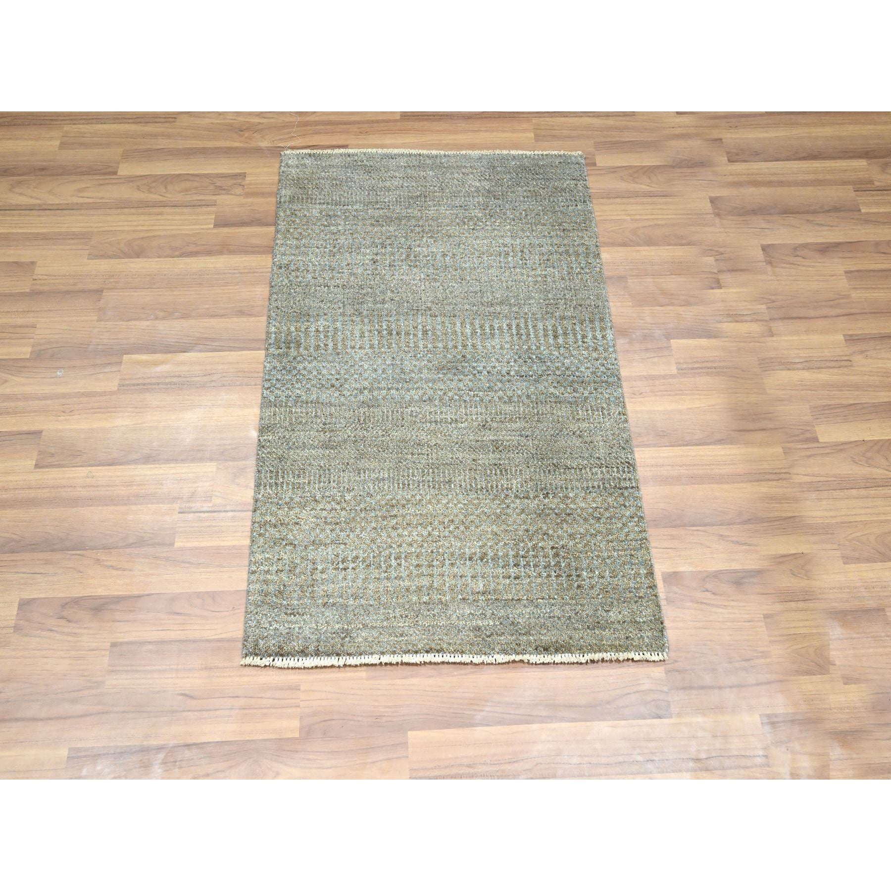 2'x3' Khaki Brown, Modern Grass Design, Hand Knotted, Undyed Natural Wool, Sample, Mat, Lush And Plush, Tone On Tone, Oriental Rug FWR458688