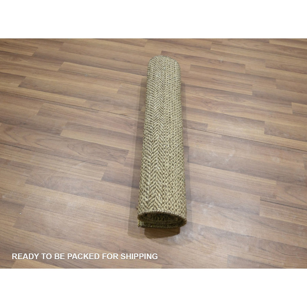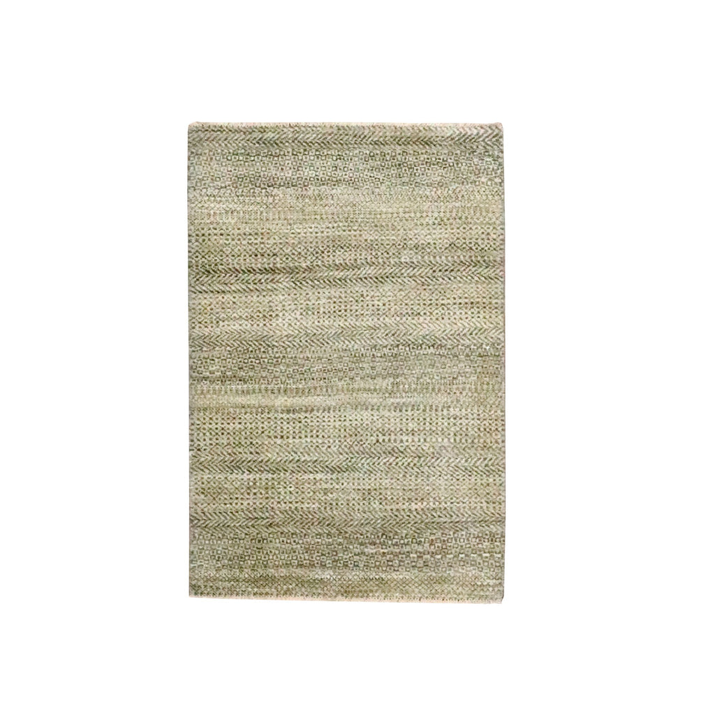 2'x3' Khaki Brown, Modern Grass Design, Tone On Tone, Undyed Natural Wool, Hand Knotted, Mat, Sample, Oriental Rug FWR459552
