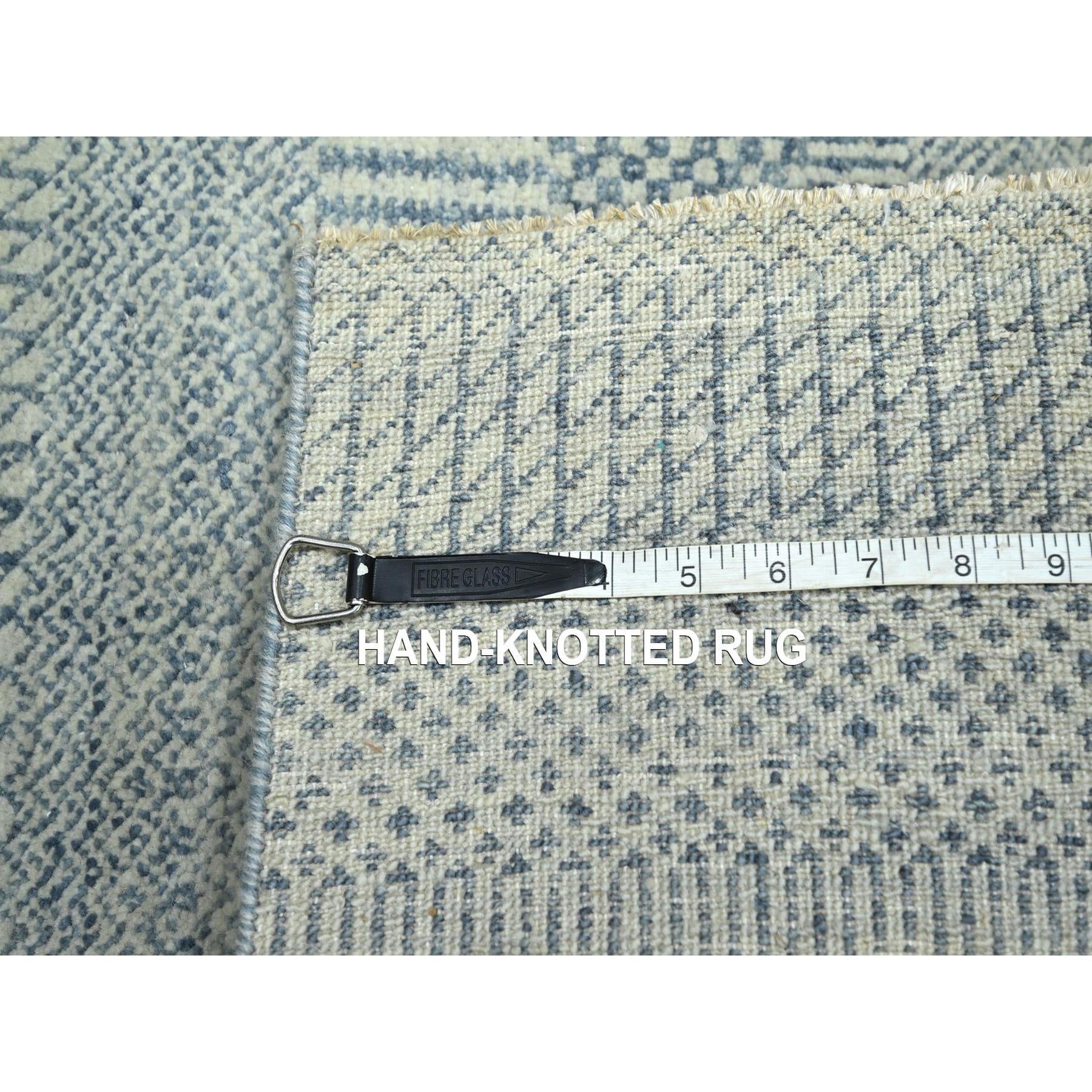 2'x3' Light Blue, Modern Grass Design, Hand Knotted, Wool With Touch Of Silk, Tone On Tone, Lush And Plush, Sample, Mat, Oriental Rug FWR458820