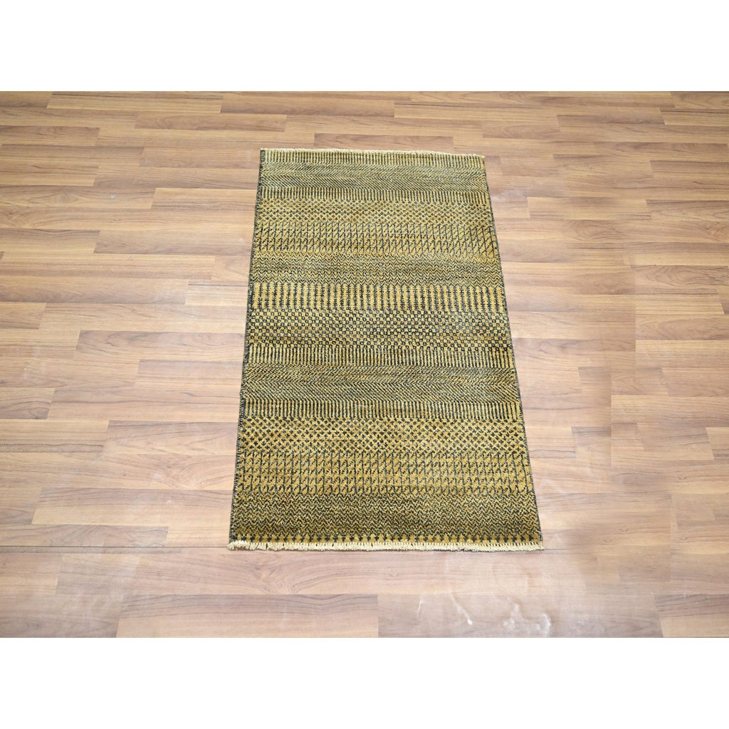 2'x3' Light Brown, Modern Grass Design, Hand Knotted, Wool With Touch Of Silk, Lush And Plush, Tone On Tone, Sample, Mat, Oriental Rug FWR458760