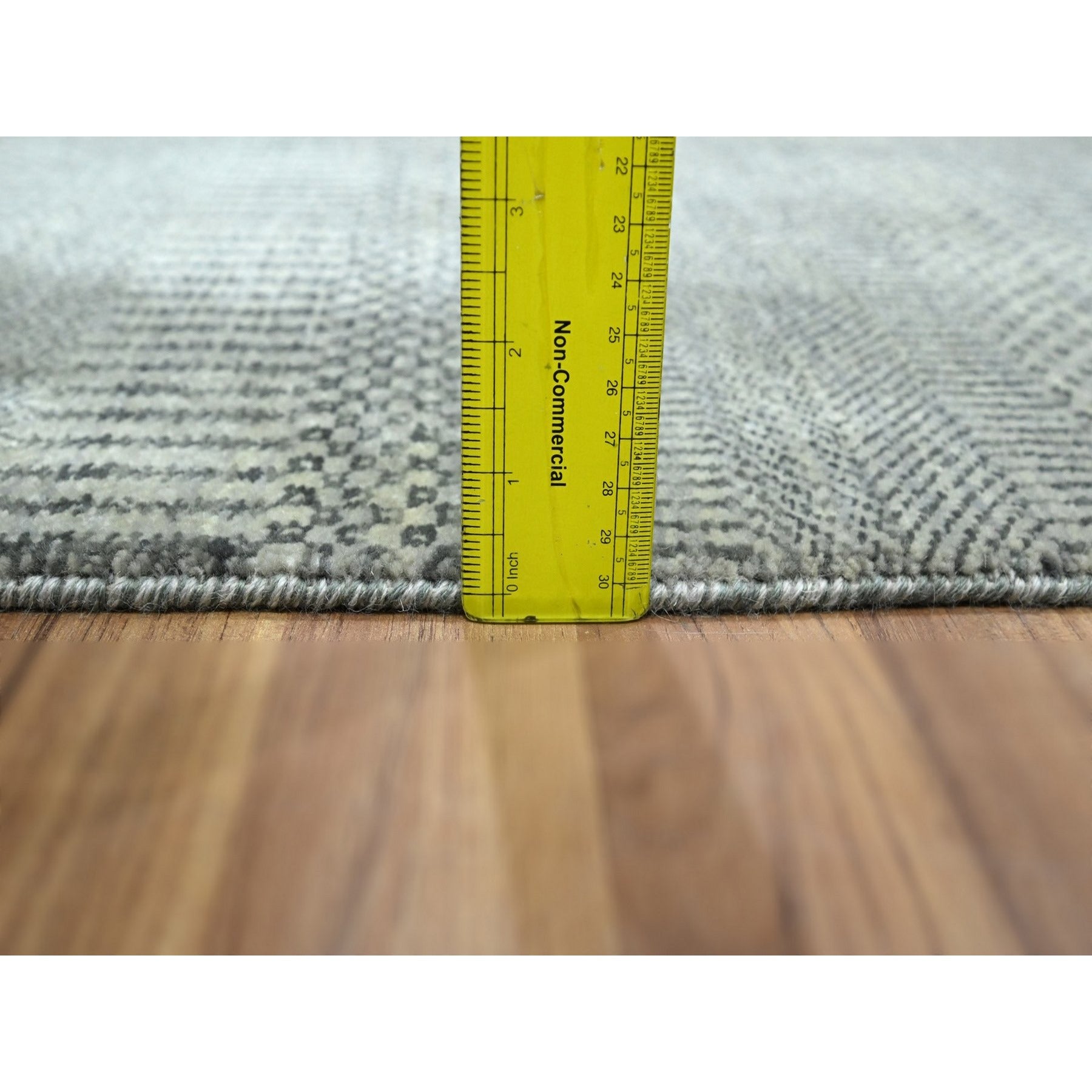 2'x3' Light Gray, Hand Knotted, Wool With Touch Of Silk, Tone On Tone, Lush And Plush, Sample, Modern Grass Design, Mat, Oriental Rug FWR458946