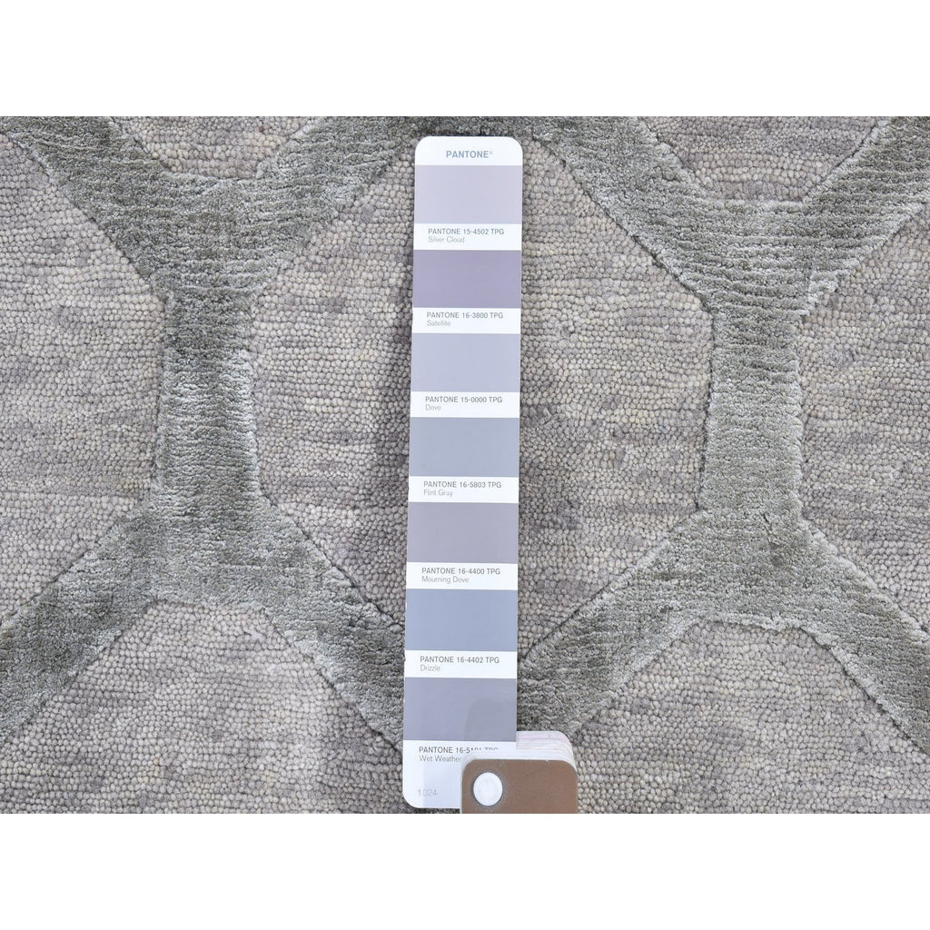 2'x3' Light Gray Hi-low Modern Wool And Silk Mat Hand Knotted Oriental Rug FWR396984