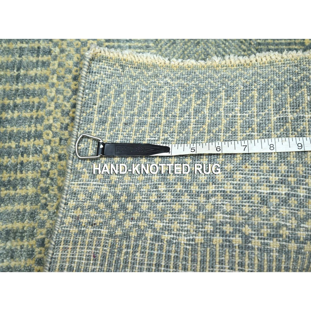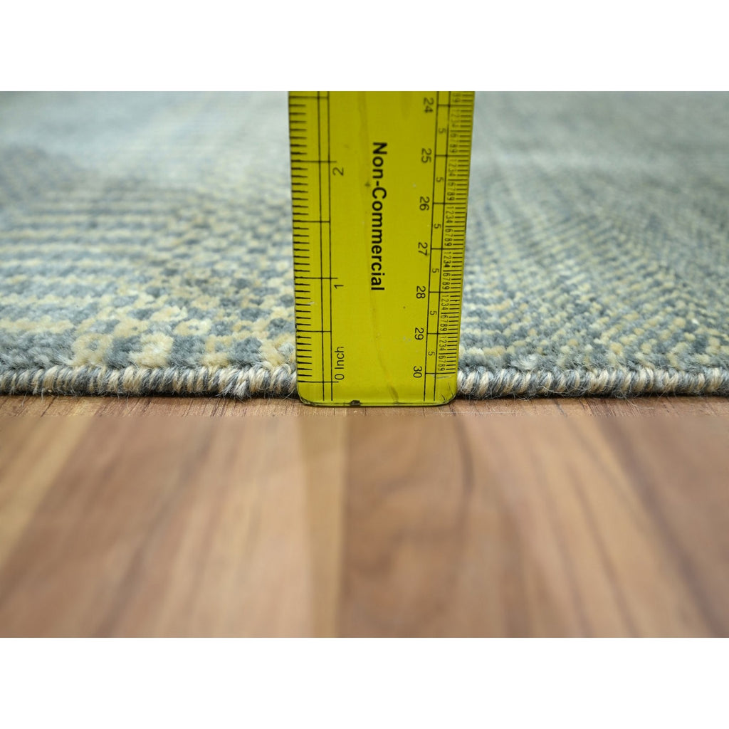 2'x3' Light Gray, Lush And Plush, Hand Knotted, Modern Grass Design, Wool With Touch Of Silk, Tone On Tone, Mat, Sample, Oriental Rug FWR458964